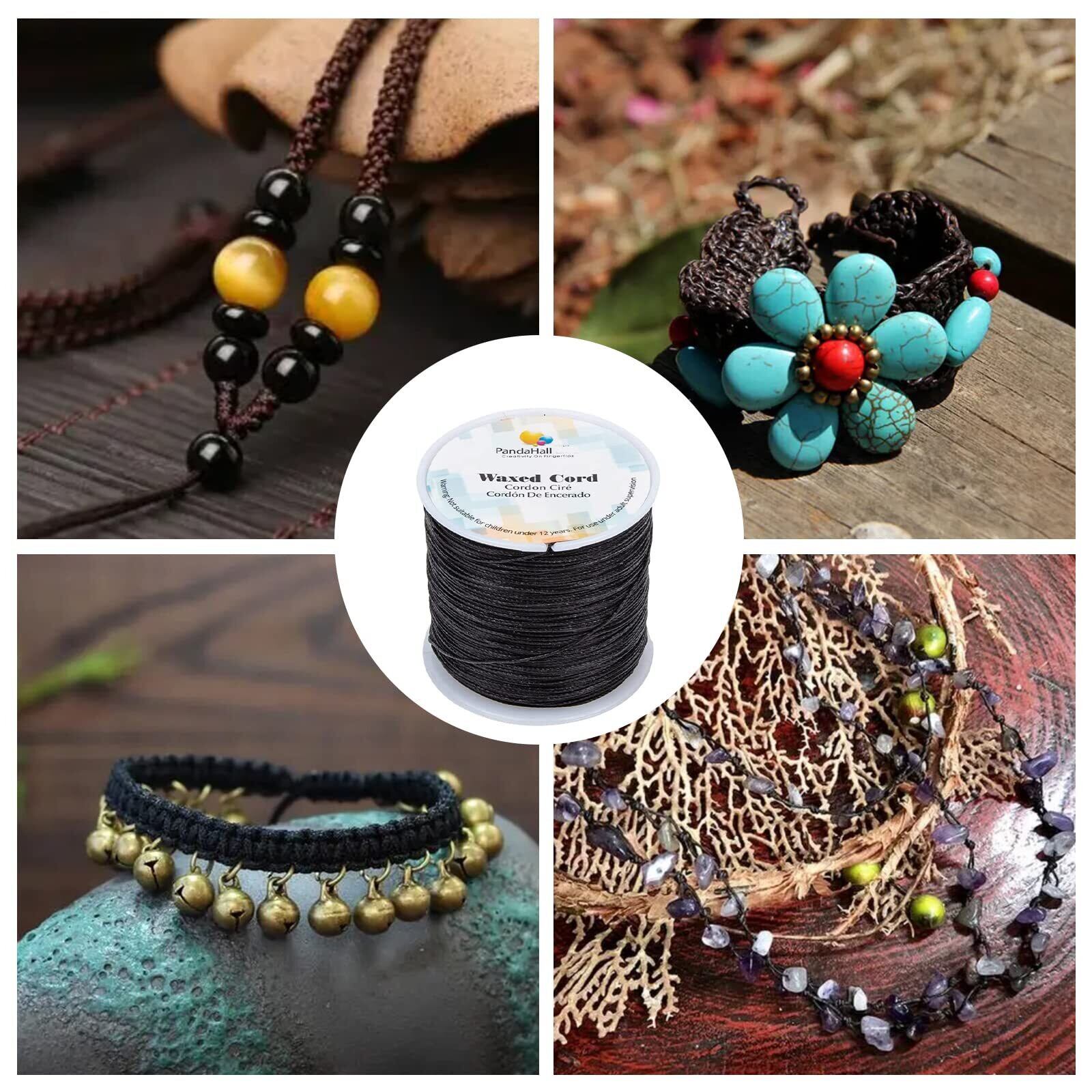 PH PandaHall 約106m/巻き ポリエステル製 蝋引き紐 直径0.5mm ロウ引き糸 ワックスコード 手縫い 糸 アクセサリー用糸 レザークラフト マクラメ DIY 手芸用品 ジュエリー用 アクセサリーパーツ 手作り素材 ブラック