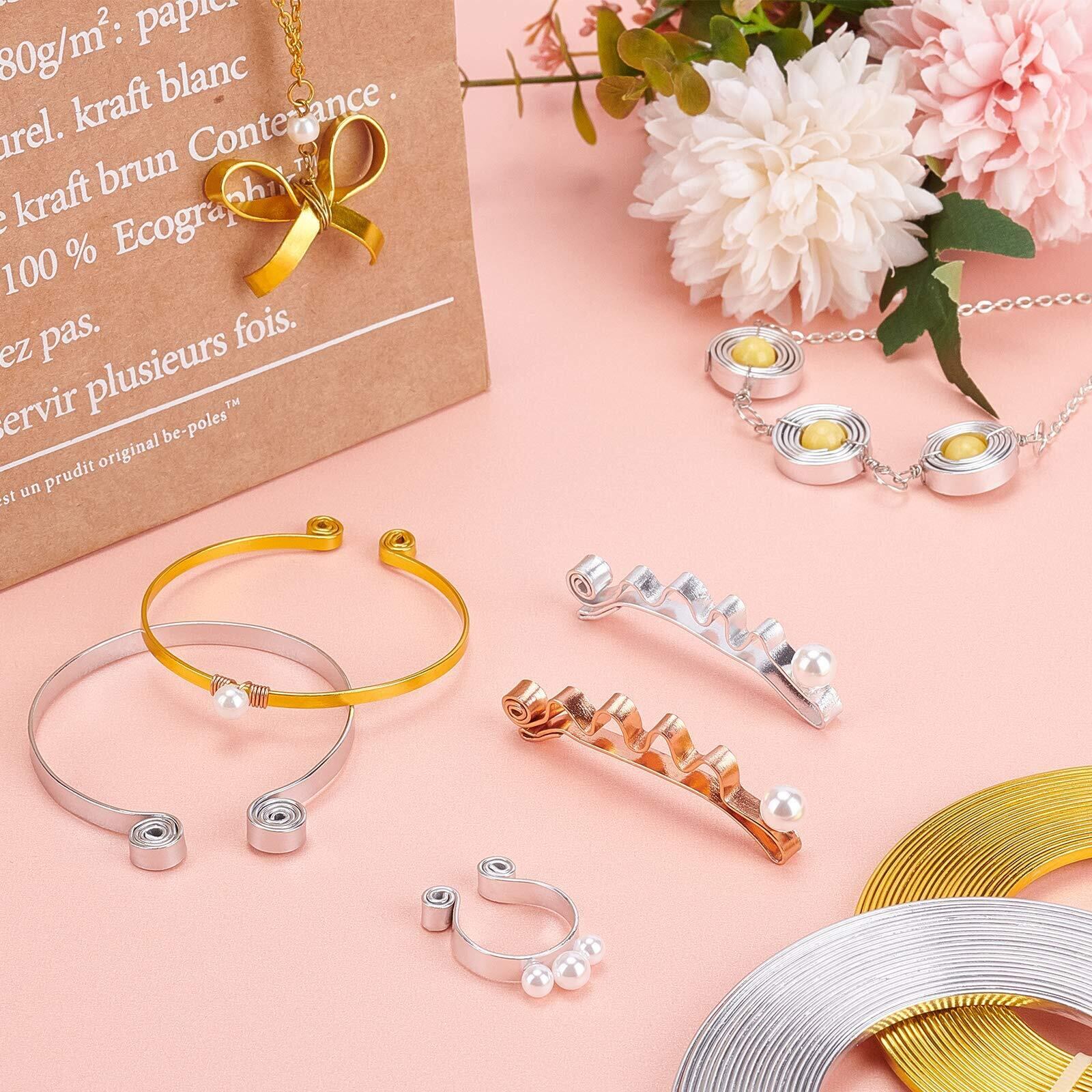 BENECREAT 全長20m幅3mm アルミ線 4色セット 平角線 曲げる線 ジュエリー作り 工芸品 園芸 手作り素材 クラフト用