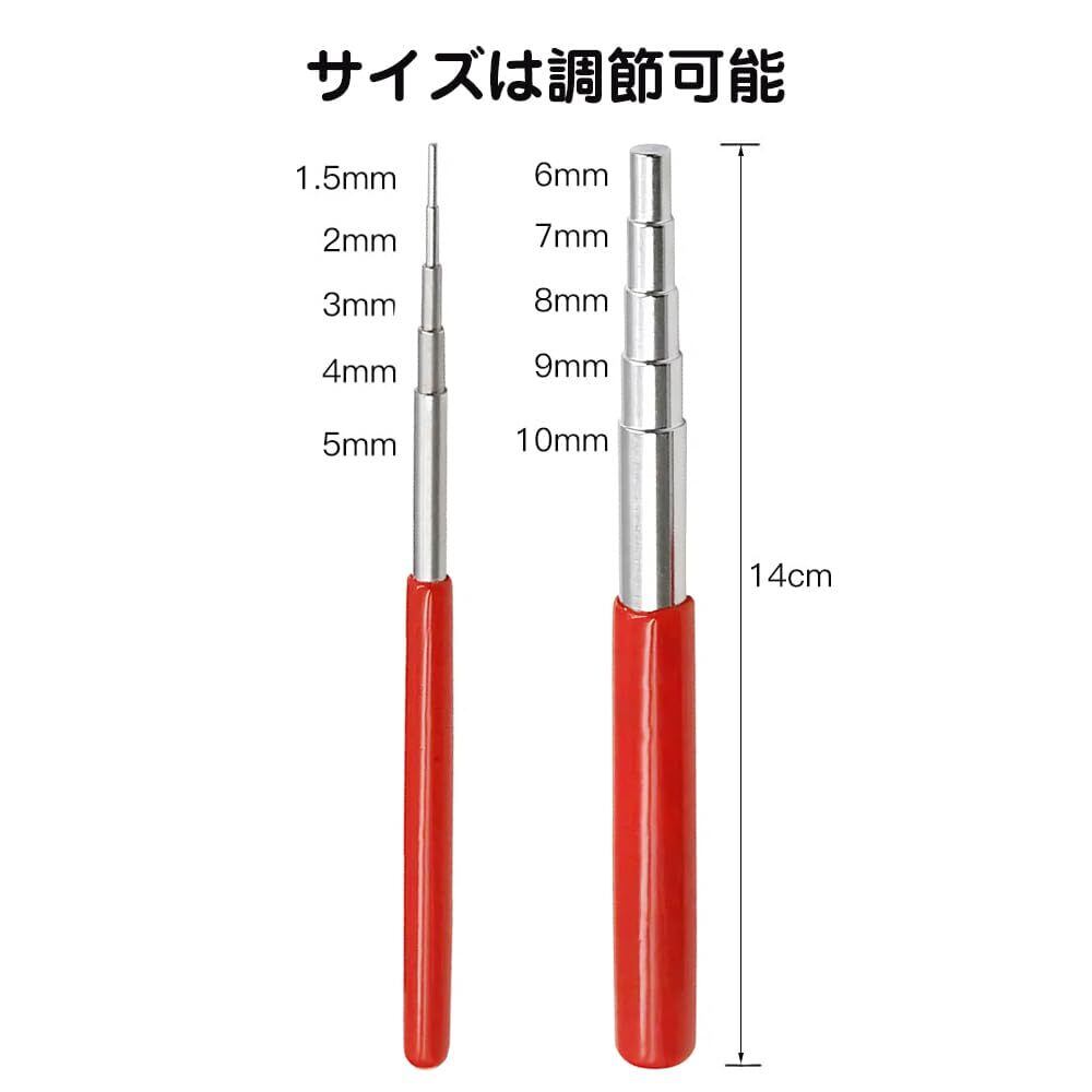 【サイズは調節可能】各マンドレルには5つのサイズがあります。大サイズの適用径:10mm、9mm、8mm、7mm、6mm。小サイズの適用径:3mm、4mm、3mm、2mm、1.5mm。