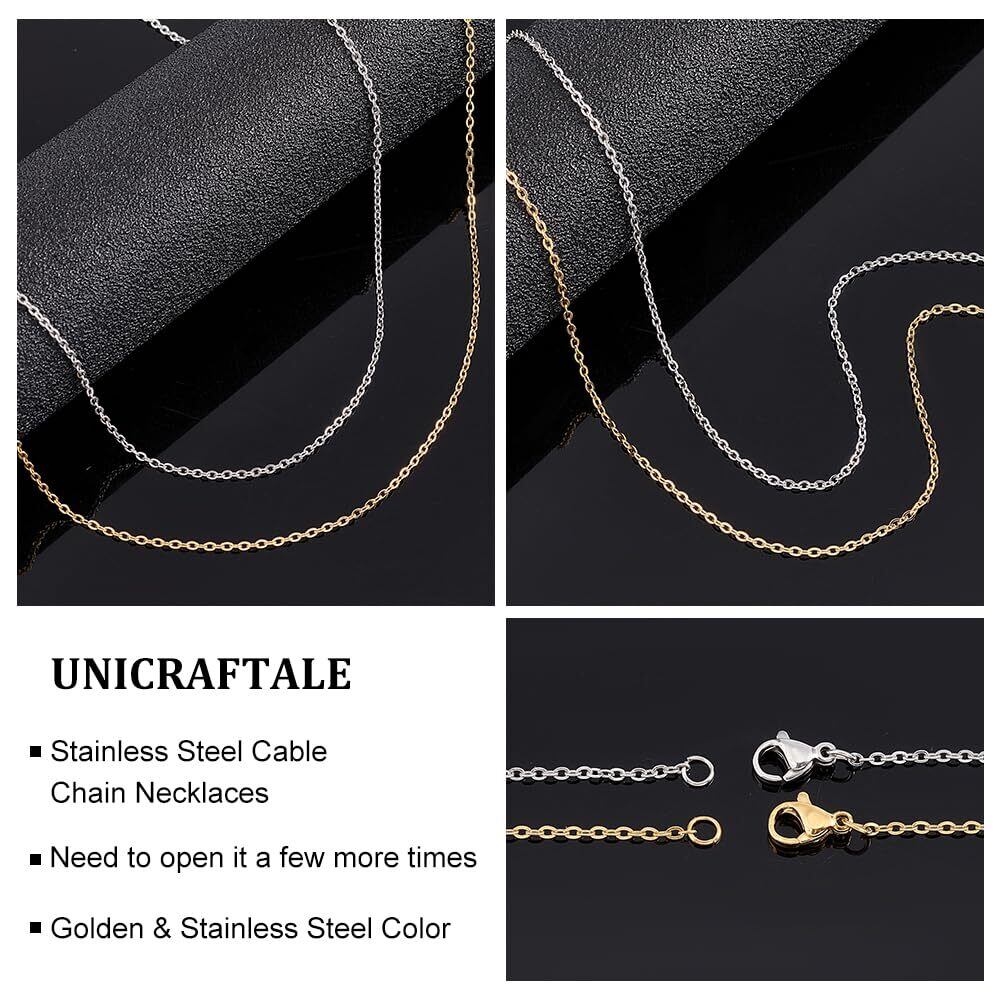 UNICRAFTALE 約12本 2色 50cm 2mm太さ チェーンネックレス ステンレス チェーン ケーブルチェーン ネックレスチェーン 極細 カニクラスプ付き 留め具付き ゴールデン ステンレスス色 ネックレス チェーン セット メンズレディジュエリー アクセサリーパーツ ストリンギング材料 クラフト用品 手作り素材 DIY材料