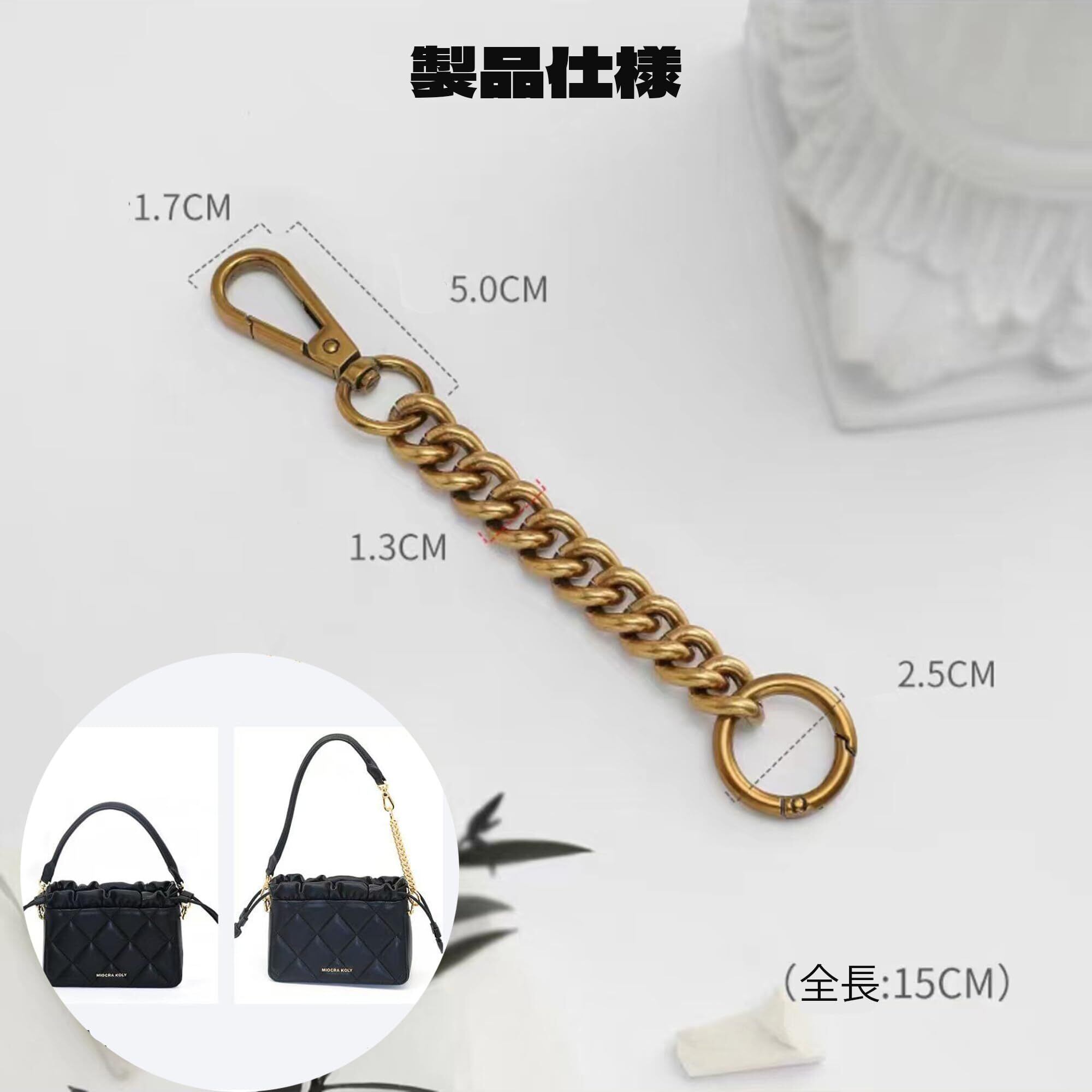 【チェーンサイズ】バッグチェーン 延長 の長さは15センチメートル 幅は1.3センチメートルです この幅はバッグにしっかりと取り付けるのに十分で 斜め掛けにも手提げにも使用できます 必要に応じて調整してください