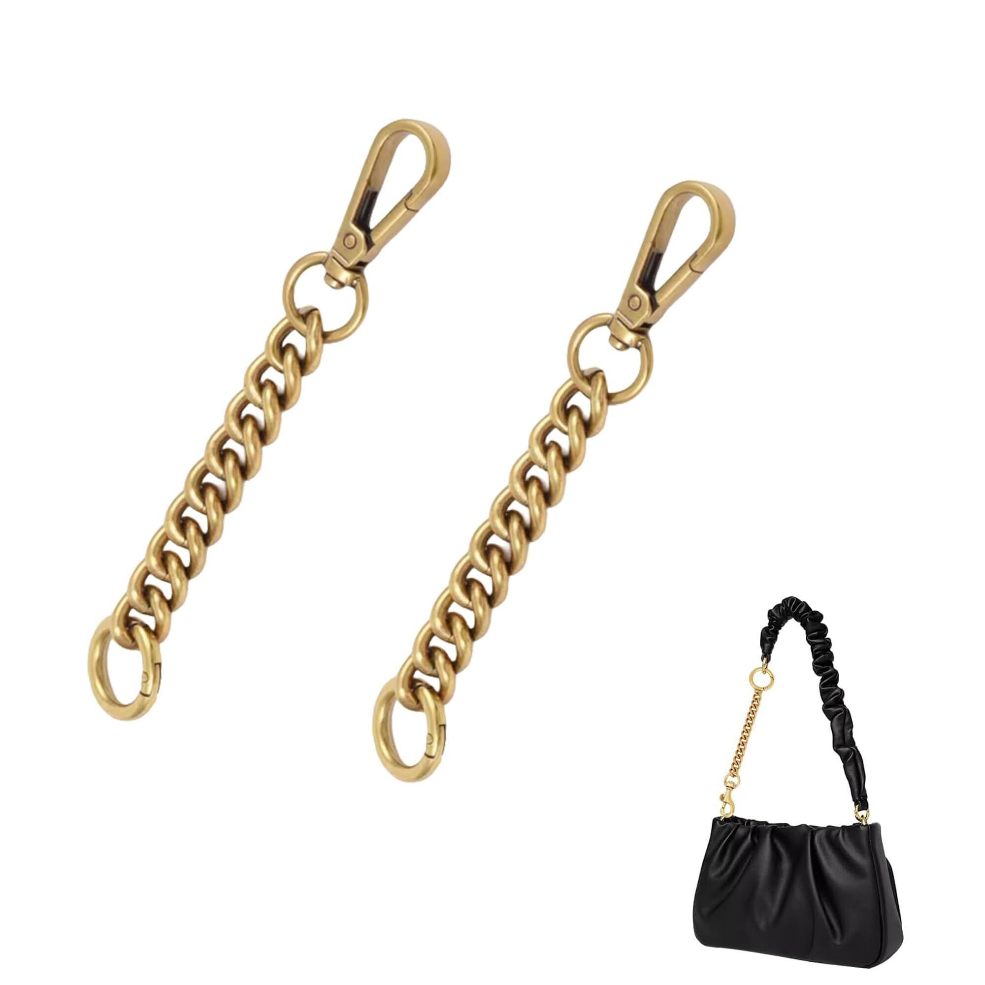 【数量限定】DEVENTORZ バッグ延長チェーン 2個セット 15cm チェーンストラップエクステンダー バッグ持ち手 エクステンダー アルミニウム カーブチェーン 交換用アクセサリー 長さ調整 修理 装飾 財布 ショルダー クラッチ ハンドバッグ用品 スプリングゲートリングとスイベルスナップフック付き(オールドゴールド) | jake
