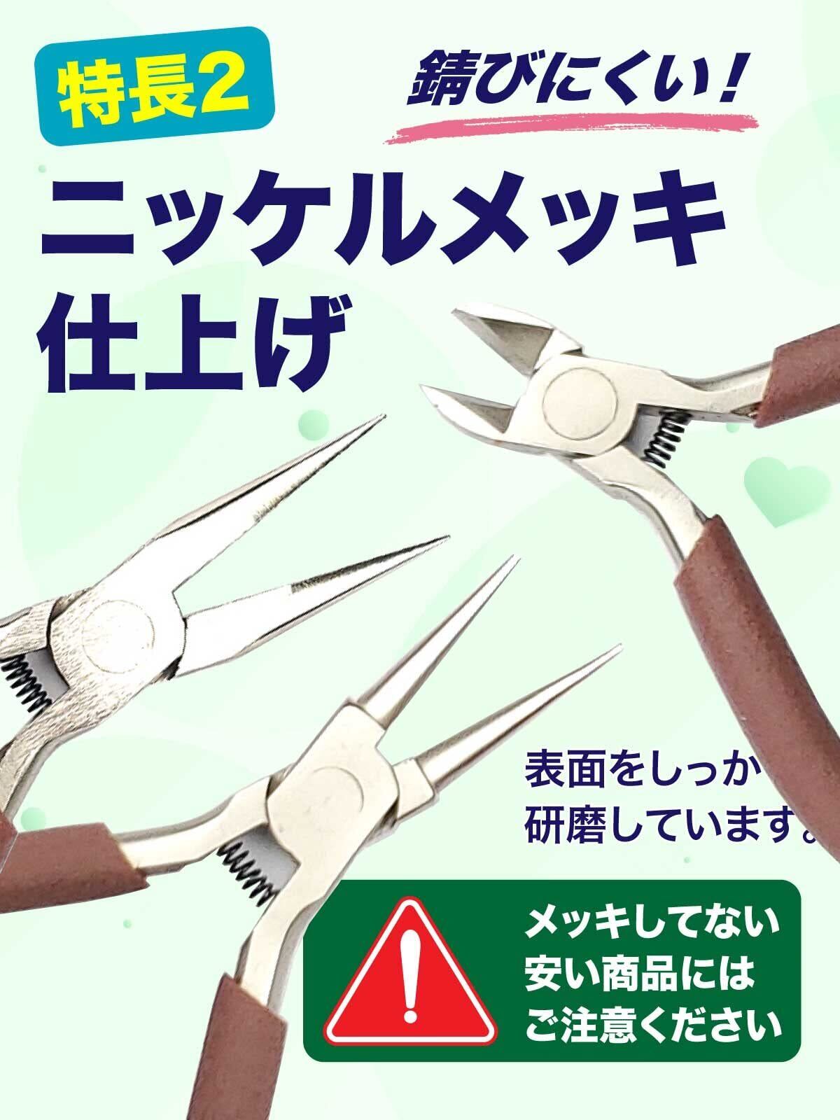 【初心者向けやっとこ7点セット】初心者の方向けに、やっとこをセットにしました!平やっとこ2本、丸やっとこ1本、ニッパー、収納ケース、9ピン10本、丸カン1個が入っています。初心者としては十分な内容です!