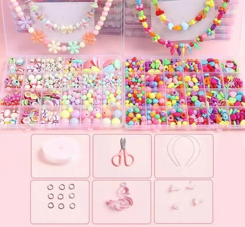 【豊富な女の子 おもちゃ】ビーズ 手芸 に用いられる小さな飾り玉。ネックレス、ブレスレット、キーホルダー、ピアス、手飾りなどに最適です。おしゃれ心が芽生えだす女の子にとって魅力的な、かわいいオリジナルのアクセサリーを作りましょう!6歳以上の子供に適用しています。