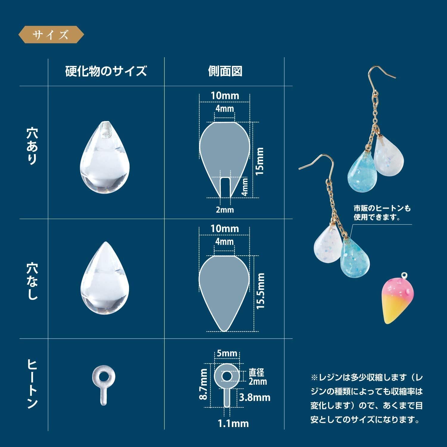 セット内容シリコーンモールド雫 10mm×15mm(穴付き)10mm×15.5mm(穴無し)ヒートン 4⌀×7mm
