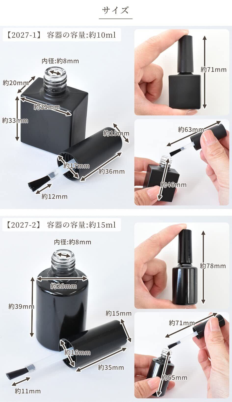 ■サイズ:10ml容器:全長約71mm 15ml容器:全長約78mm ※詳細は画像をご確認ください。