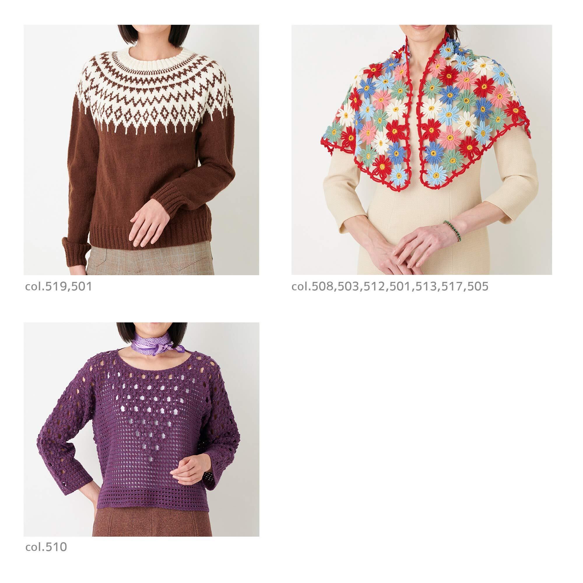 適度に目が詰まるので、かぎ針の編地や編み込み模様がきれいに仕上がります。