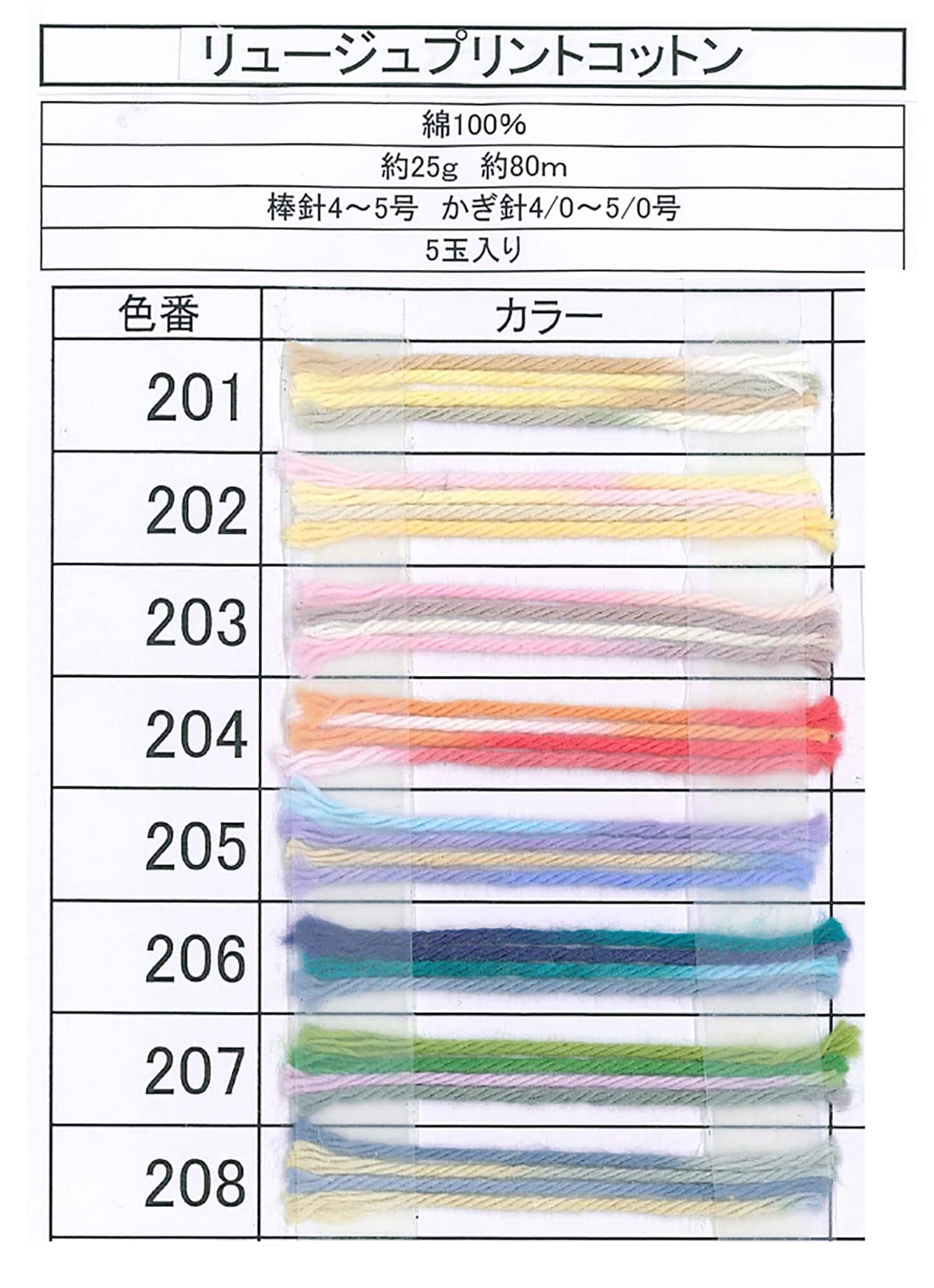 元廣 SKI YARN ( スキー毛糸 ) リュージュ プリントコットン 合太 5玉 セット