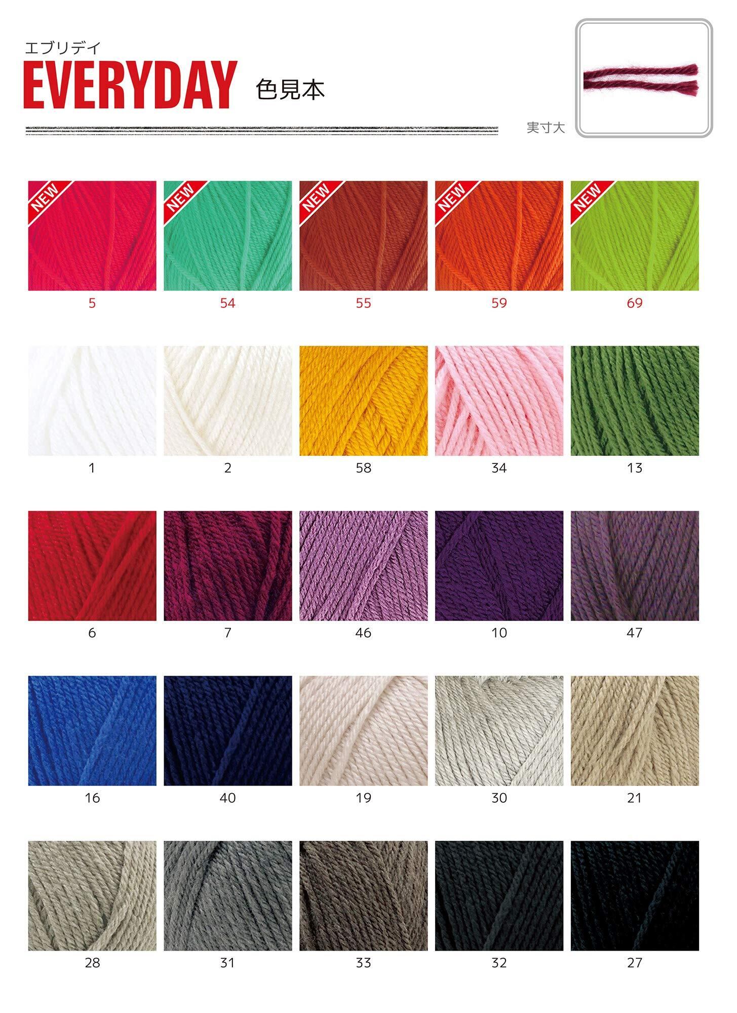 エブリディシリーズは他にも段染めタイプやアルパカ入り、ツィードタイプ、太いタイプなど種類がございます。是非、お客様のお気に入りをみつけてください!