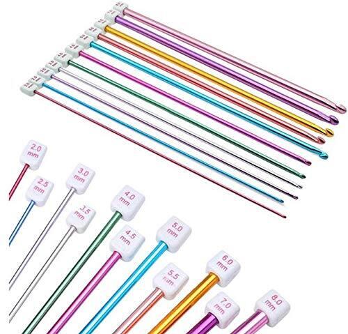 OKUSU-JP アフガン 編み針 かぎ針 11本入 カラフル レース針 編み棒 アルミ製 アルミニウムフック 編み物道具 DIY 手芸 セーター マフラー 帽子 ニット 長27cm 編み針セット