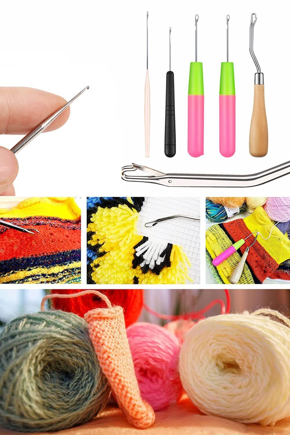 YFFSFDC マイクロ 編み物用 ラッチフック かぎ針 編み針 毛織り針カーペット編み 毛糸DIYマフラー帽子などのメンテナンス用 かぎ針セット 編み針 人気5本セット