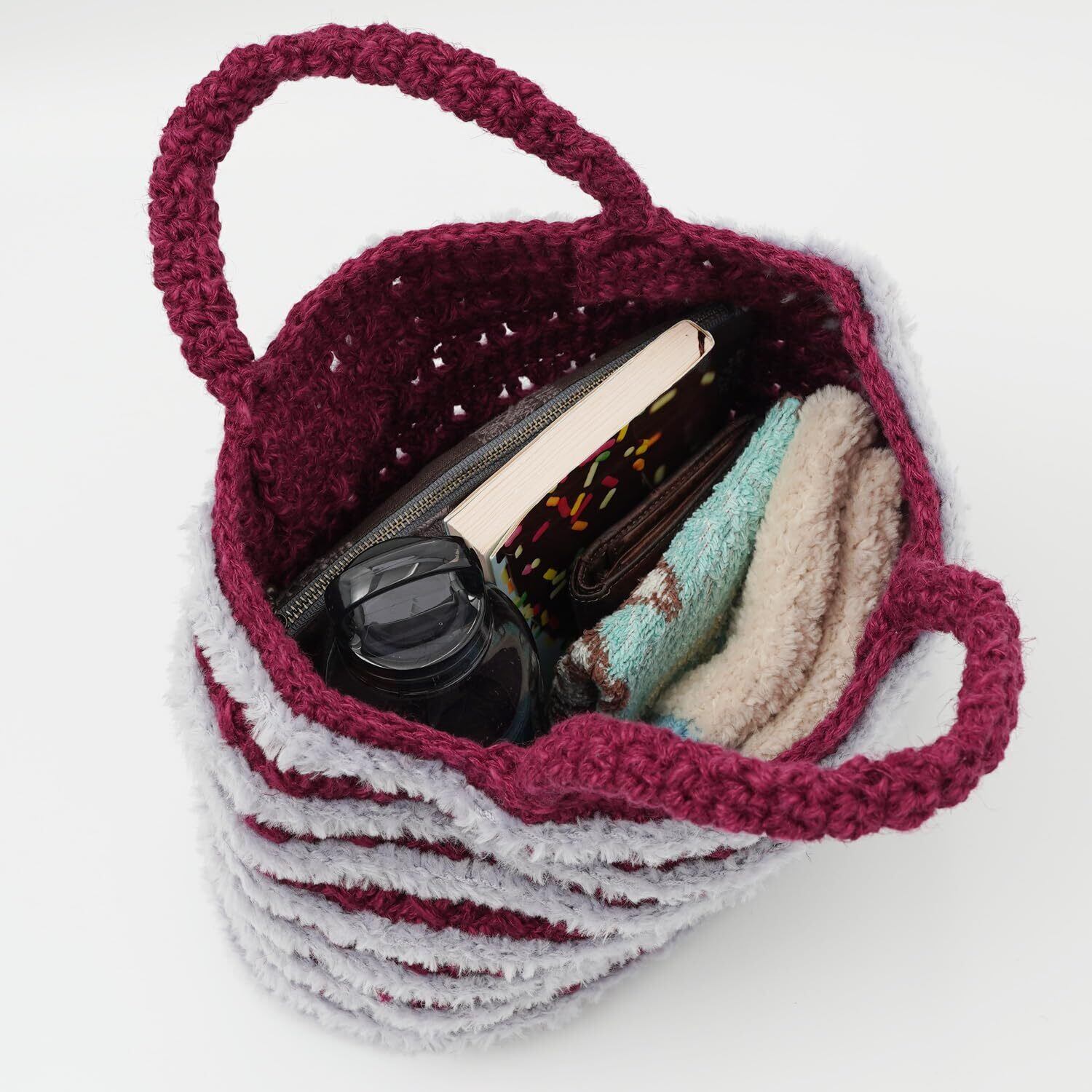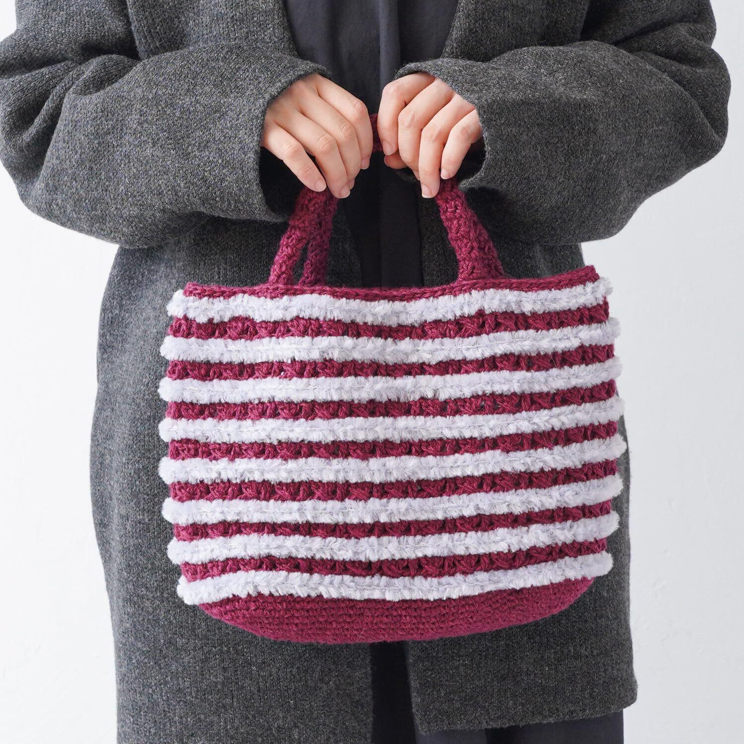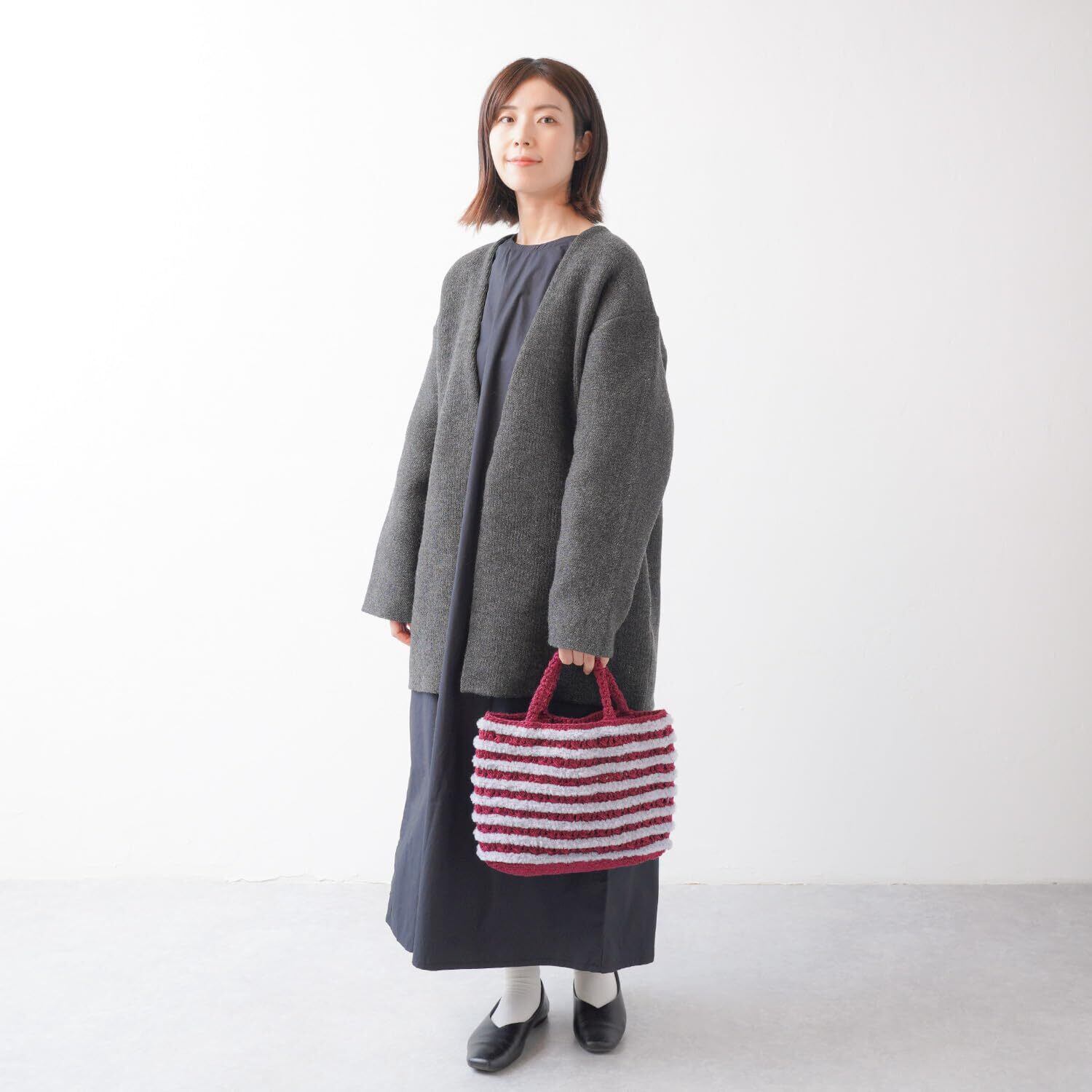 原ウール 編み物キット #17-6 ファーのボーダーバッグ (えんじ)