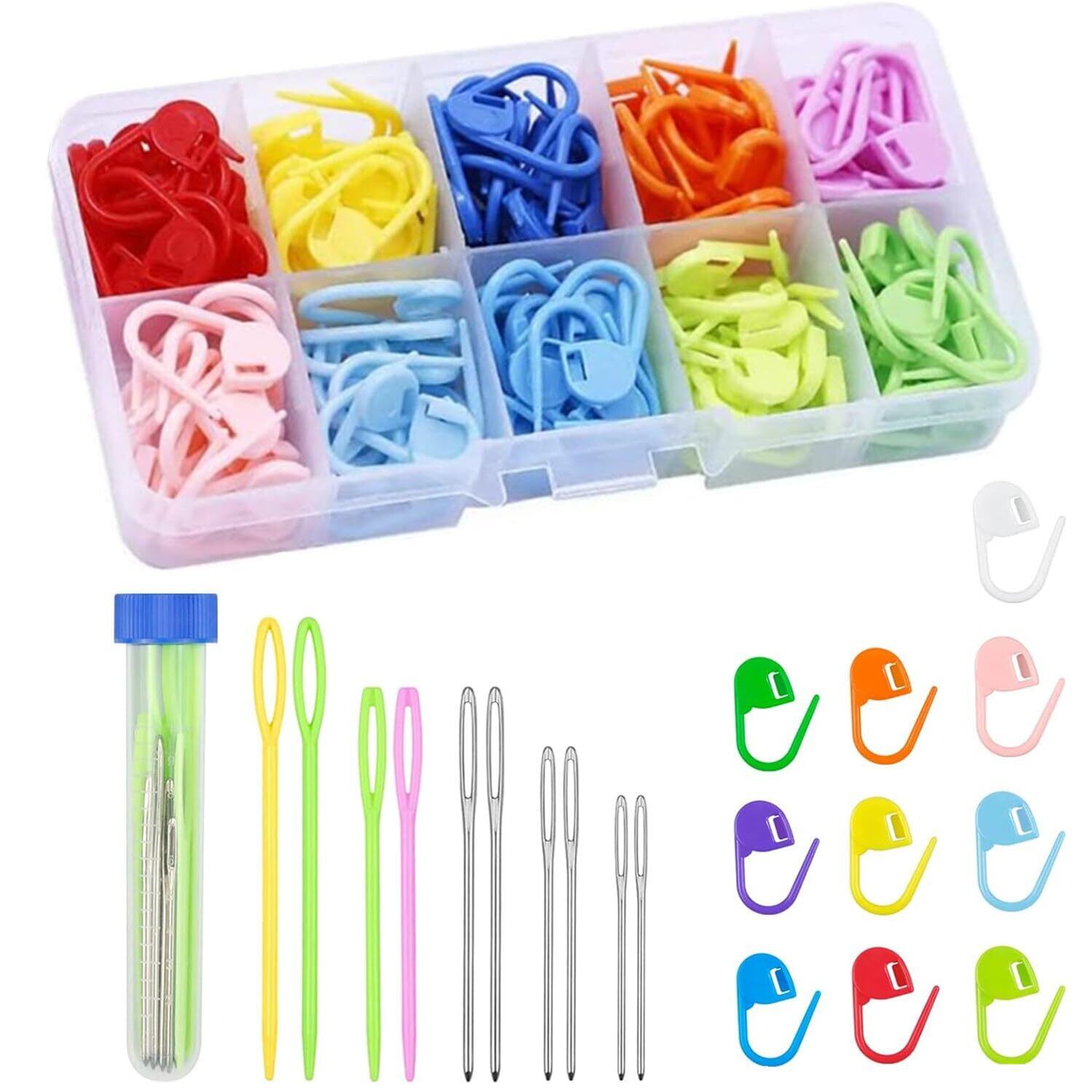 編み物 マーカー ステッチマーカー 120個 10色、10個 大きな目の鈍い縫い針 かぎ針ケース マーカー 編み物 収納ケース付き