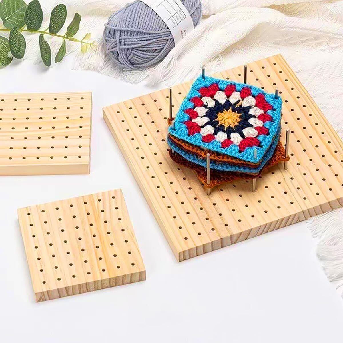 木製ブロッキングボード 10cm*10cm ステンレス鋼の棒10本付き 編み物用ブロッキングボード かぎ針編みボード 裁縫編み用 初心者向け