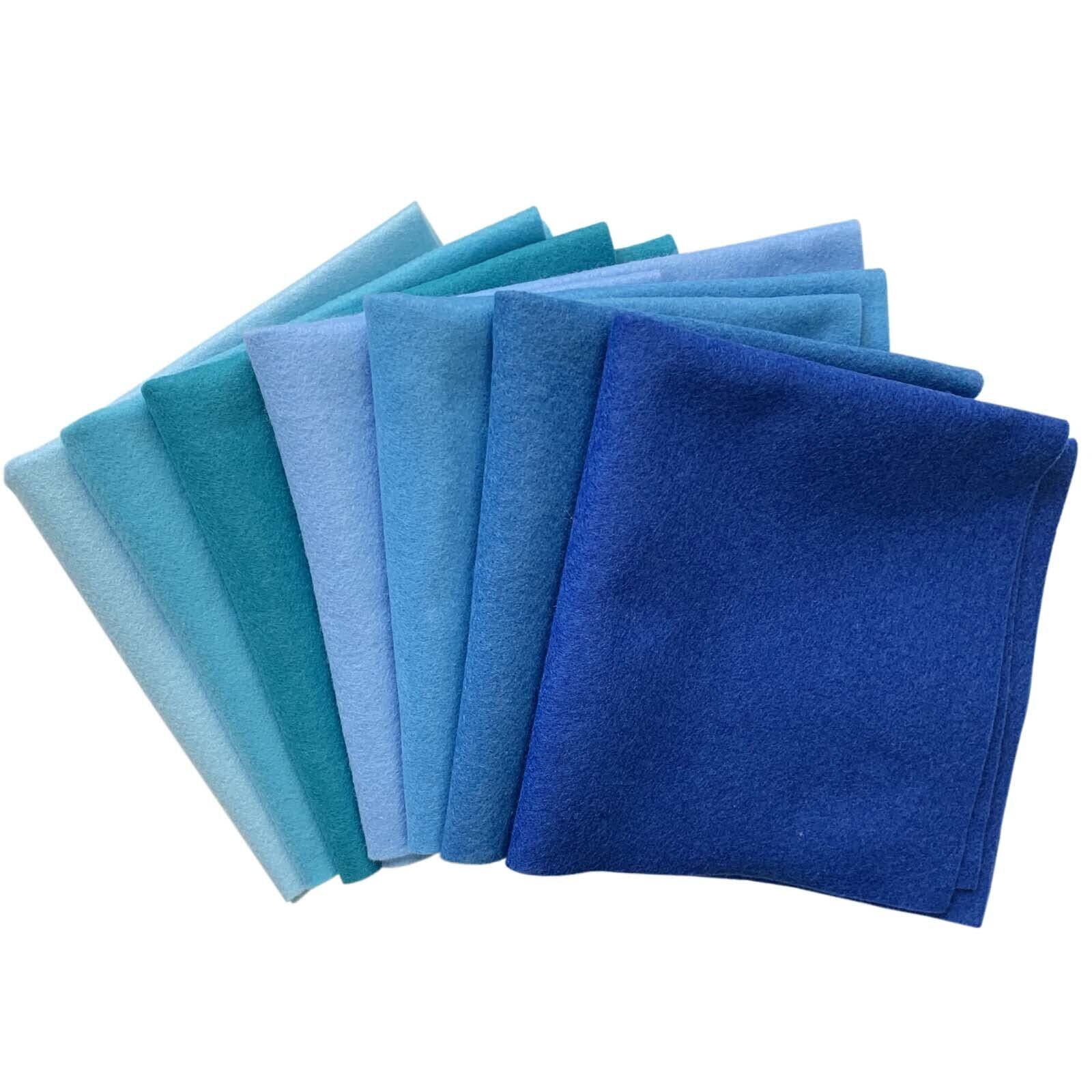 7枚 フェルト DIY手芸用 生地 柔らかいタイプ 1.5mm厚さ 45cmx45cm (ブルー)