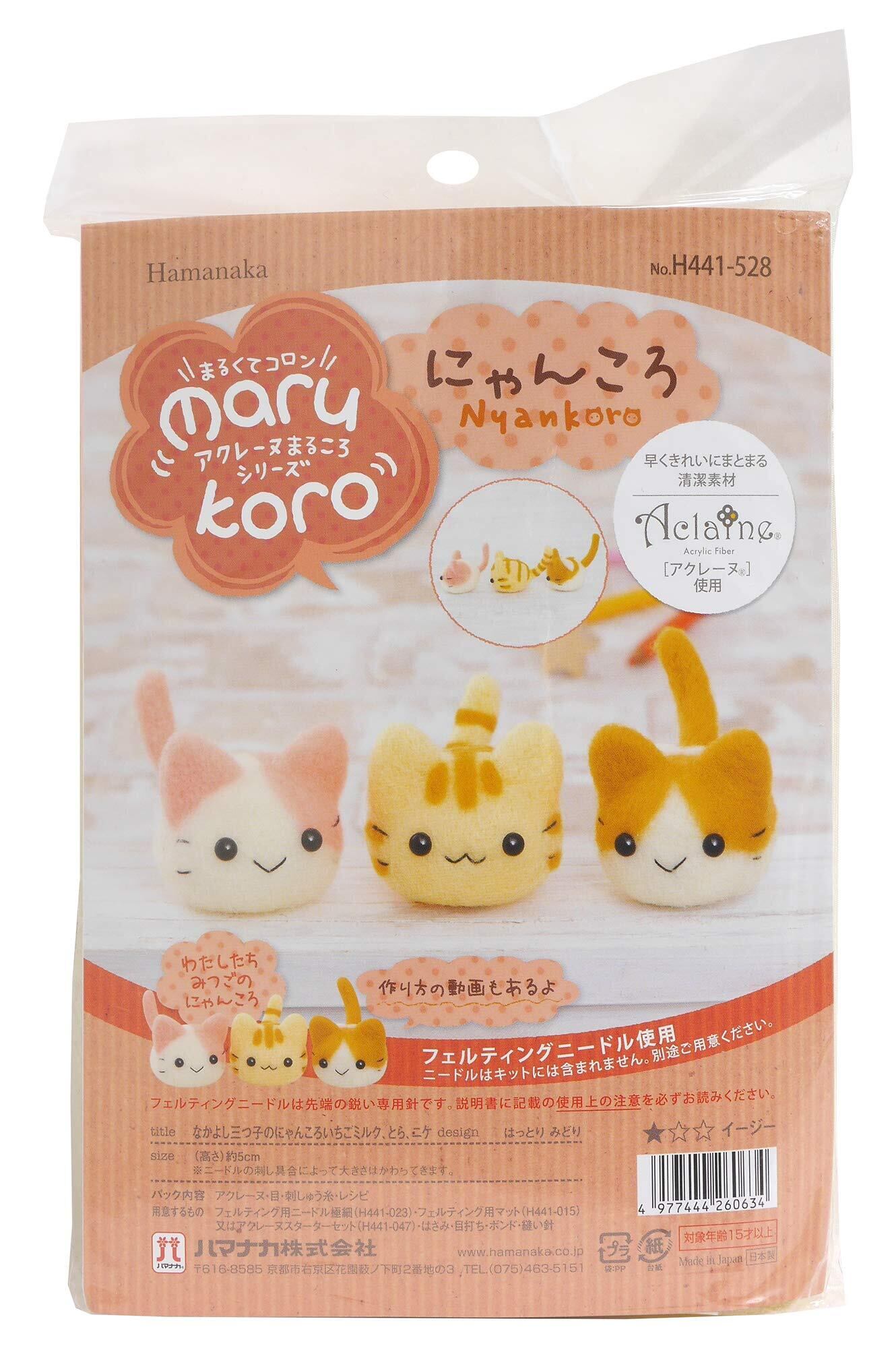 ハマナカ 羊毛フェルトキット marukoro アクレーヌまるころシリーズ なかよし三つ子のにゃんころ いちごミルク・とら・ニケ H441-528 ベージュ