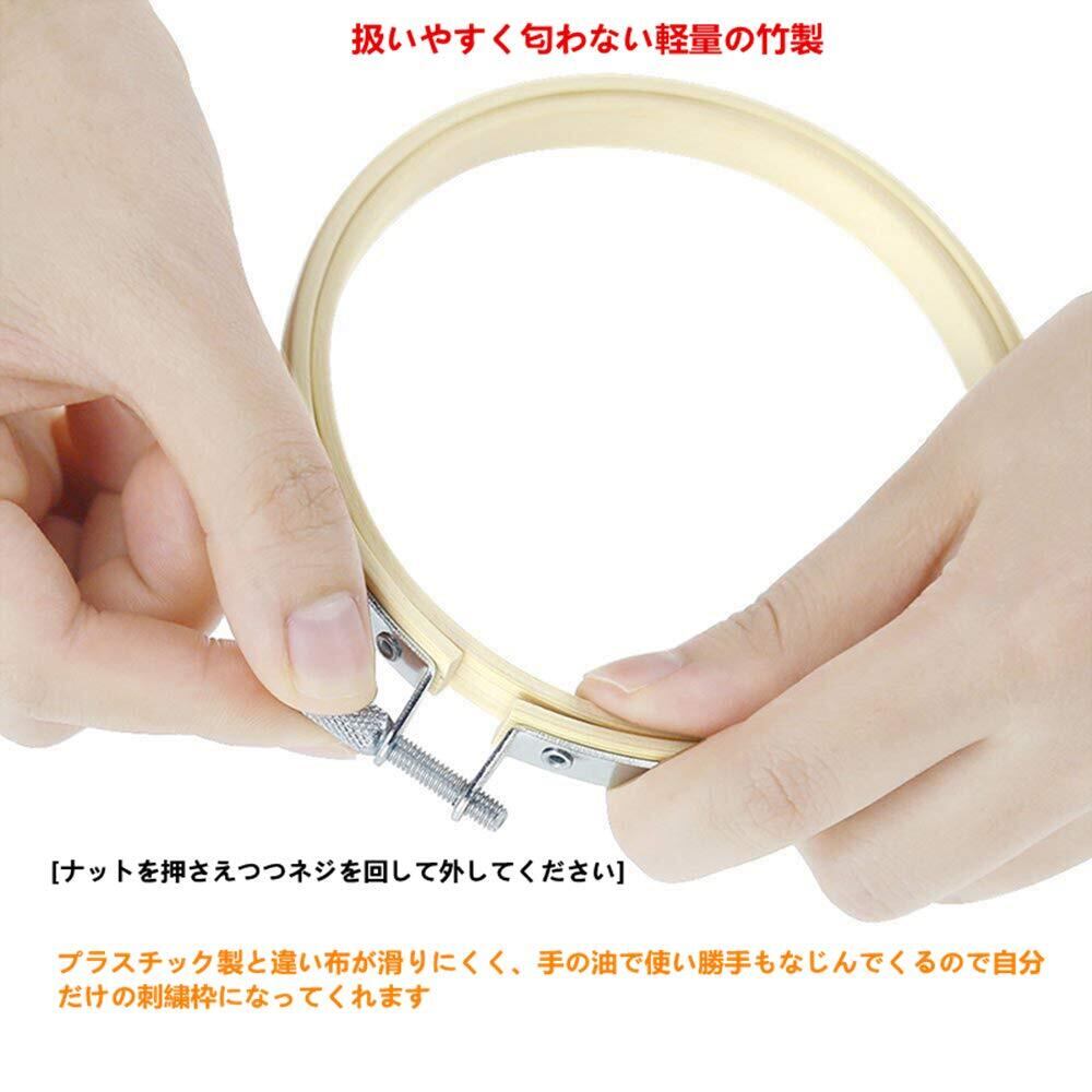 【木製】この刺しゅう枠は強く耐久性がある木で作られ、とても丈夫なアイテムです。長い時間に使用しても大丈夫です。更に、天然の竹の材質なので、軽くて美しく、磨かれた竹の刺しゅう枠です。