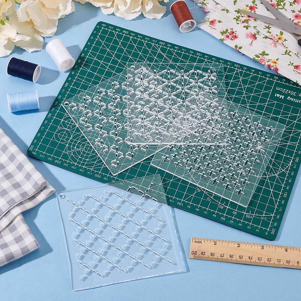 パッケージ内容: 縫製ニーズに合わせて、クロス、菱形、三角形、六角形パターンのアクリルテンプレートを4枚含まれます。