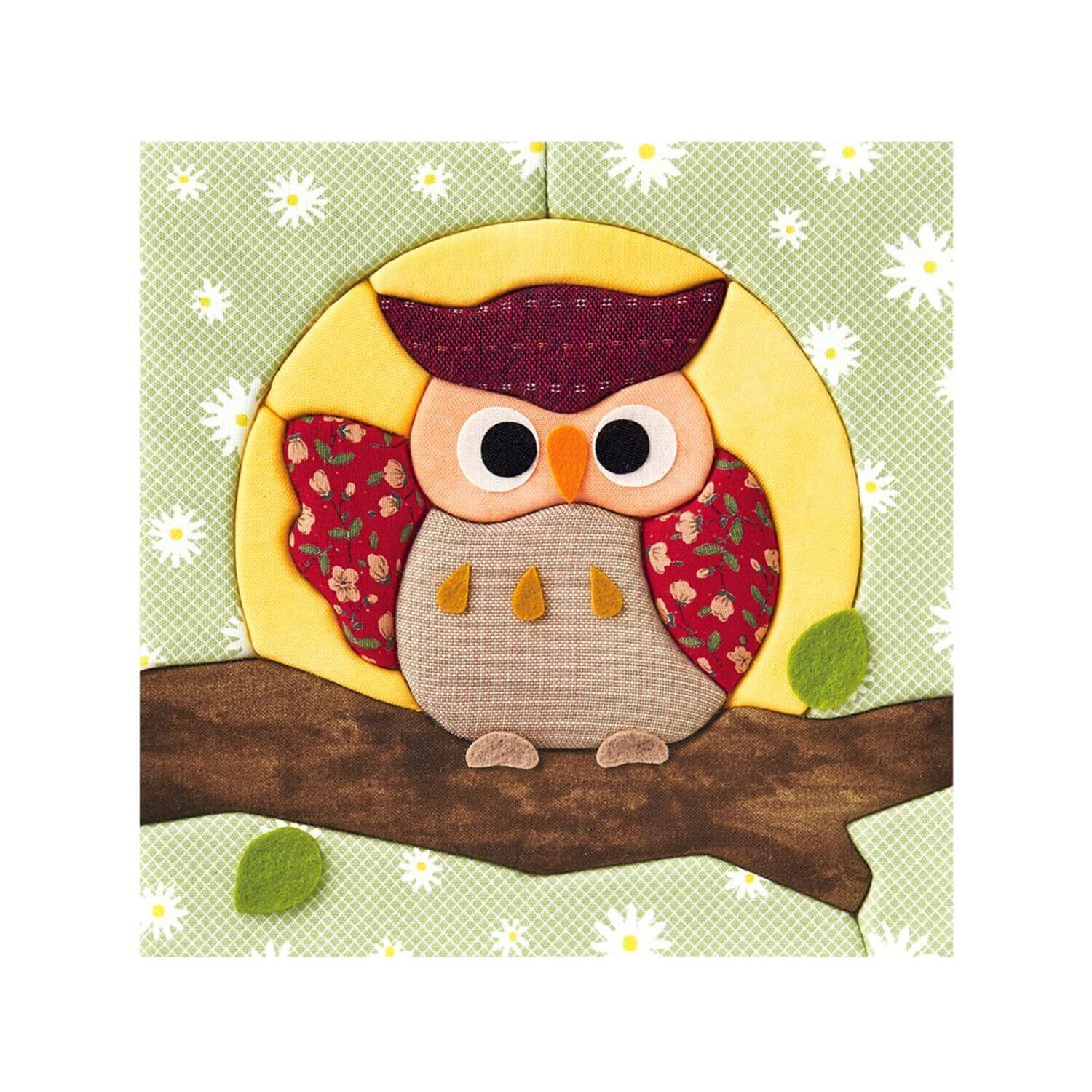 優しい色合いの布できめこむ、片手を上げた姿に癒されるふくろう