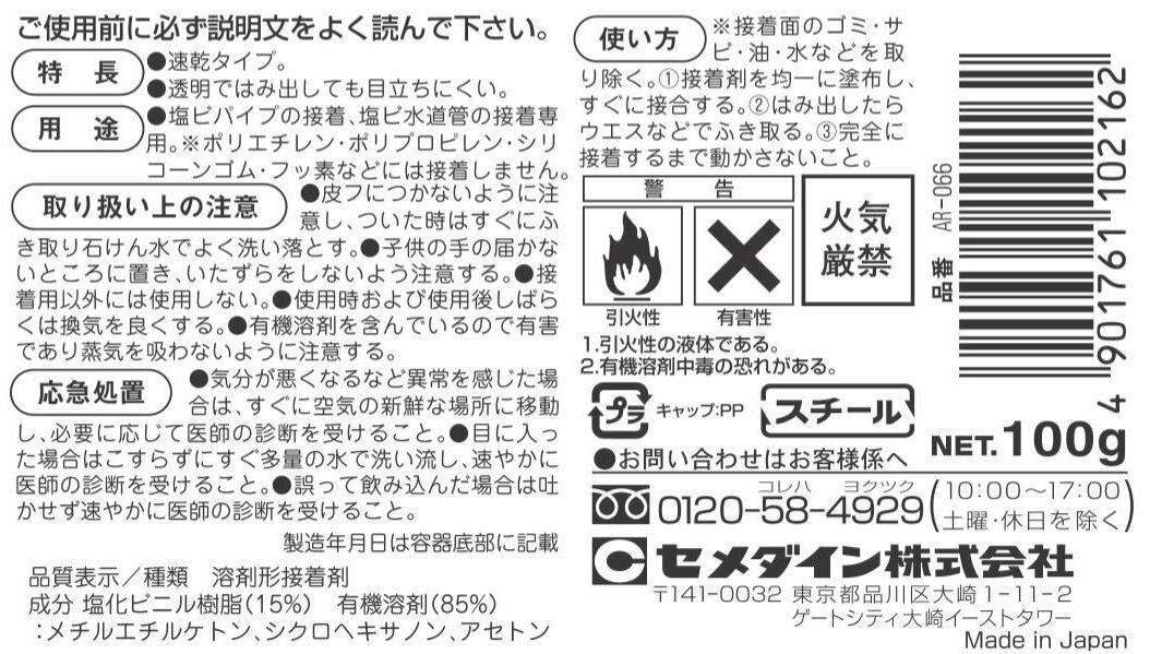 セメダイン 塩ビパイプ用A 接着剤 100g AR-066