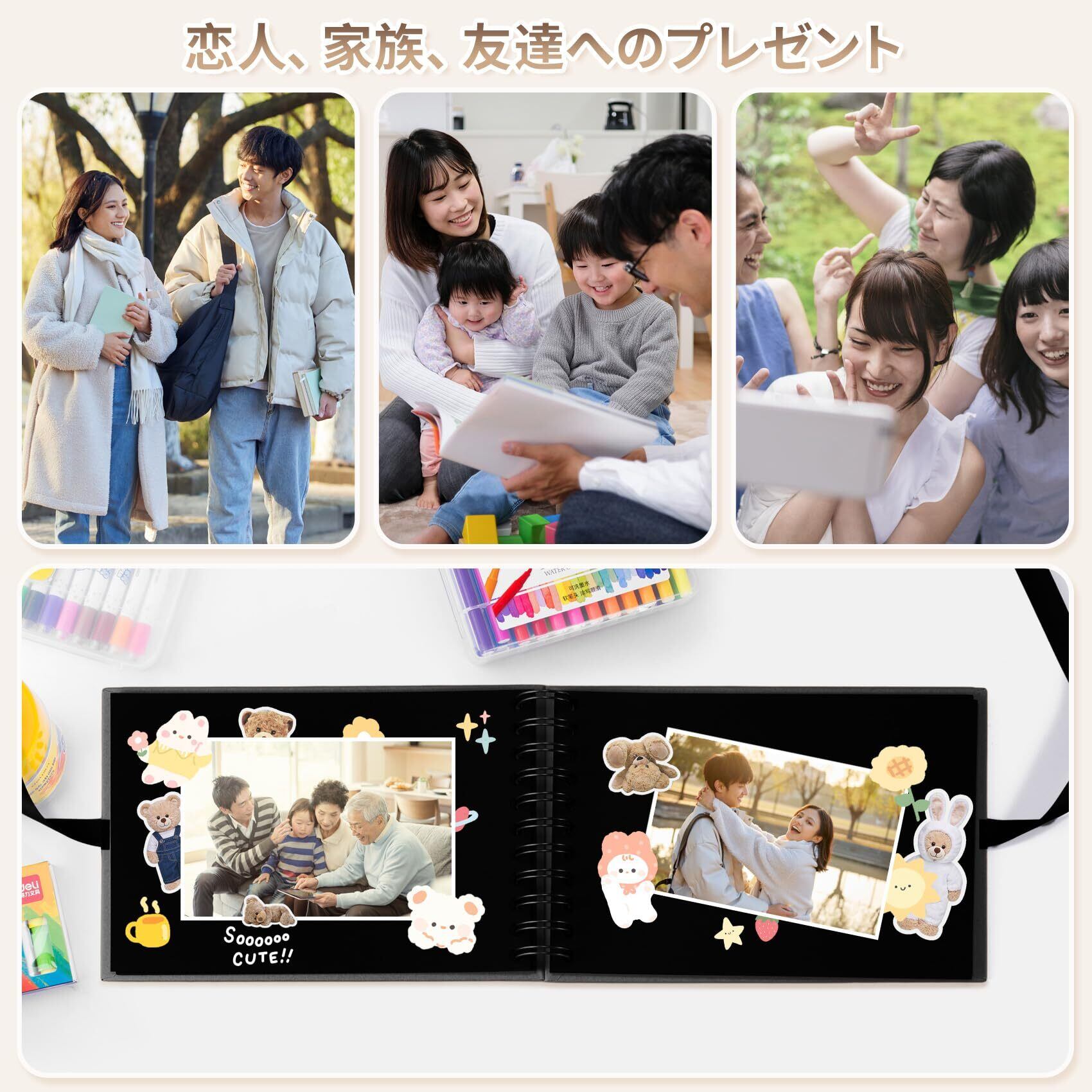 【DIY可能なアルバム】黒紙サイン帳は無地なので、写真やデコレーションが引き立ちます。カラーペンやスタンプ、シールなどで自由にデコレーションできます。※本商品はリング式フォトアルバムのみで、デコレーション用の付属品は含まれておりません。