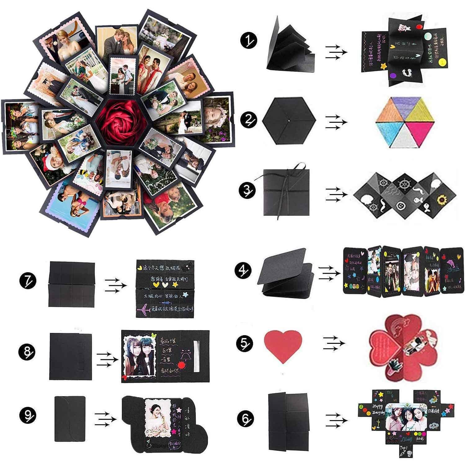 【2022最新】サプライズボックス 爆発ボックス DIY アルバム クリエイティブ スクラップブック 祭りテーマ デザイン 飾り素材付き バレンタインデー・誕生日・卒業・記念日・祝い・母の日 プレゼント・ラブメモリー 記念日プレゼント・結婚式、六角型 ブラック (六角形状) | jake