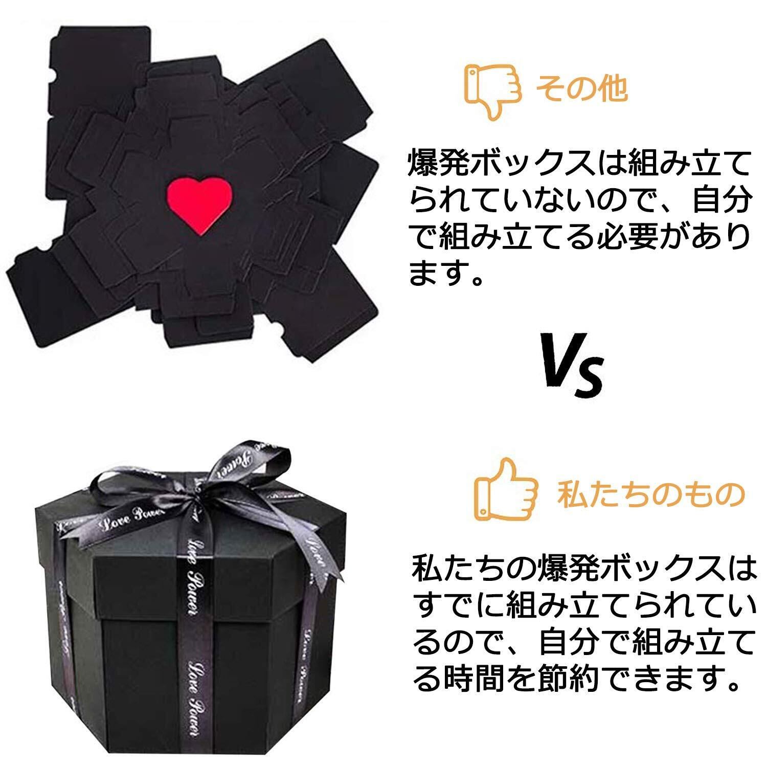 サプライズボックス 爆発ボックス DIY アルバム クリエイティブ スクラップブック 祭りテーマ デザイン 飾り素材付き バレンタインデー・誕生日・卒業・記念日・祝い・母の日 プレゼント・ラブメモリー 記念日プレゼント・結婚式、六角型 ブラック (六角形状)