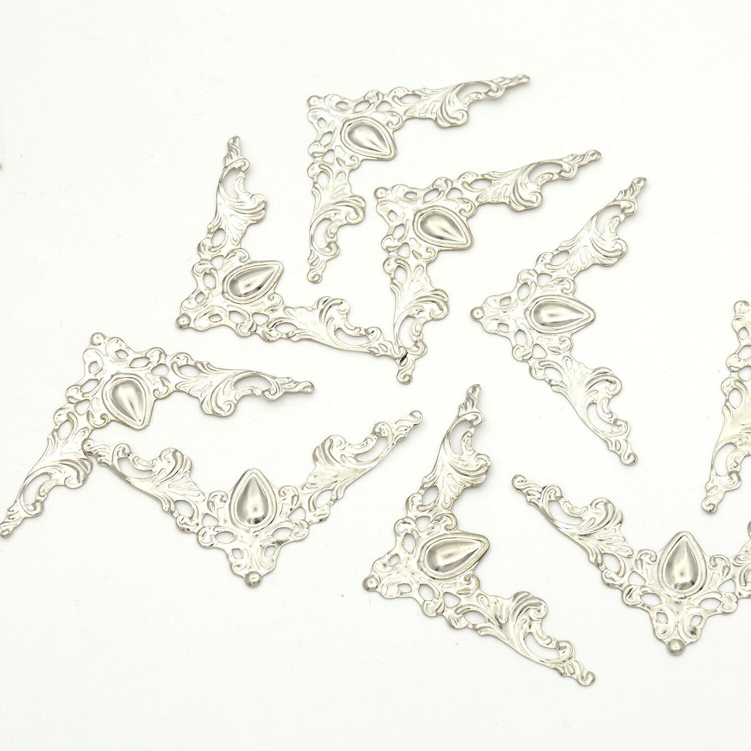 sempiterno 40個 コーナー装飾金具 プロテクター ボックスコーナー飾り アンティーク 台座 フォトフレーム 木箱装飾 透かしパーツ コーナー用 トライアングル ブロンズ DIY 手芸 (シルバー 4cm x 4cm)