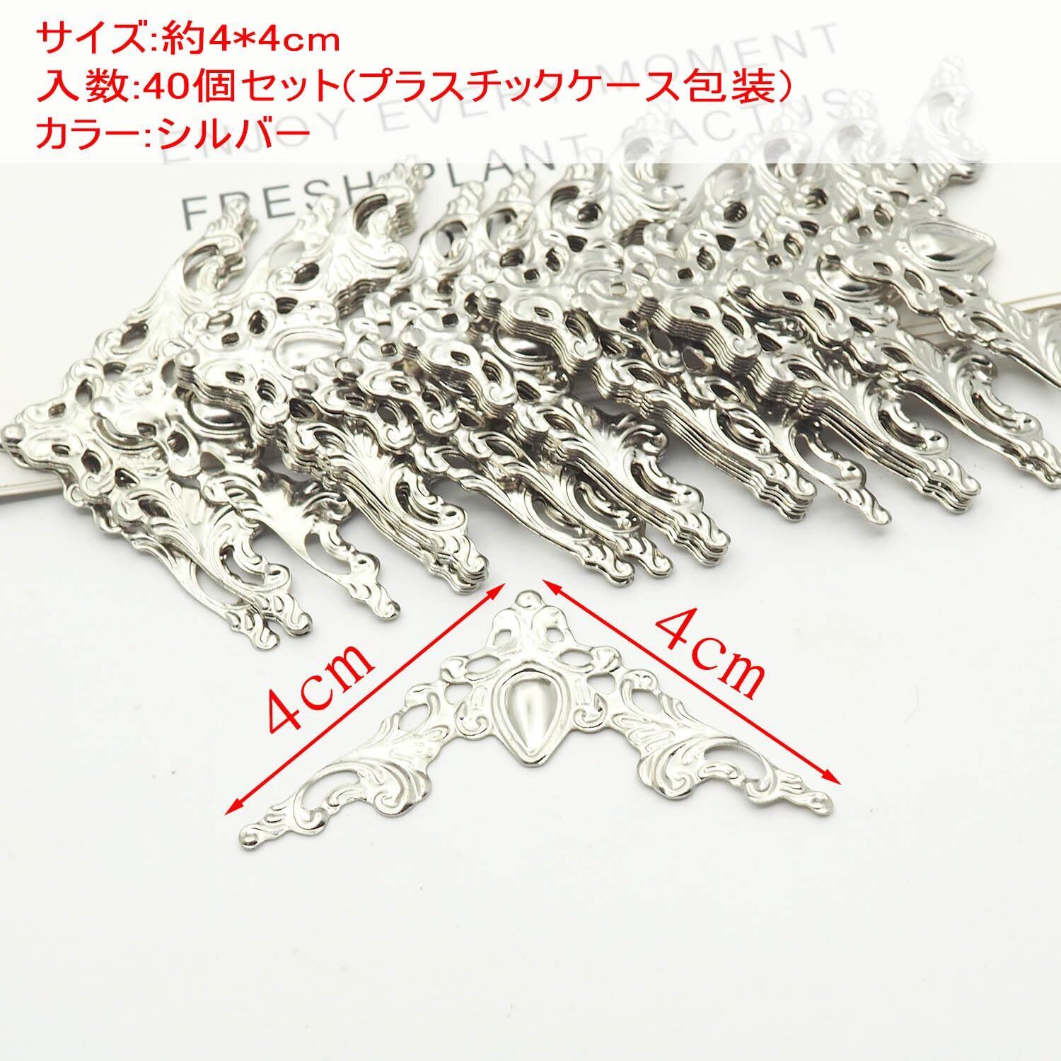 【在庫セール】sempiterno 40個 コーナー装飾金具 プロテクター ボックスコーナー飾り アンティーク 台座 フォトフレーム 木箱装飾 透かしパーツ コーナー用 トライアングル ブロンズ DIY 手芸 (シルバー 4cm x 4cm) | jake