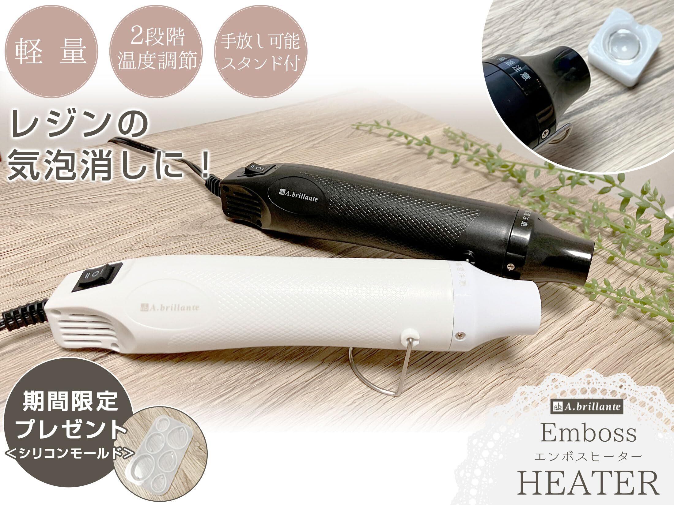 A.brillante エンボスヒーター 温度2段階切替 レジン気泡消し 小型 電源コード2m レジンアクセサリー加工 プラバン加工 エンボスパウダー加工 コンパクト ミニ 気泡飛ばし ホワイト