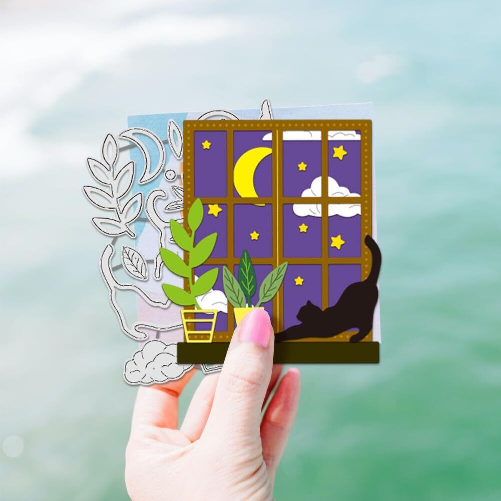 パッケージ内容:カッティングダイは1セット2枚入り;パターン:猫と窓;さまざまな装飾のニーズに簡単に対応できます。