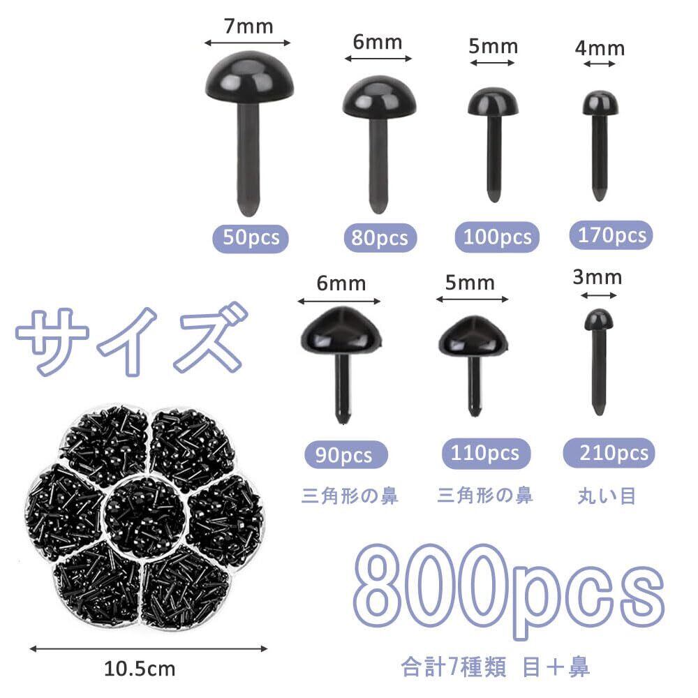 さし目 ぬいぐるみ 目 差し目 丸型 黒目 目玉 パーツ かわいい 三角形 さし鼻 ぬいぐるみ 鼻 動物 プラスチックノーズ ドールメイキング 収納ケース付き 手芸 DIY 縫製 約800個入り 3mm/4mm/5mm/6mm/7mm