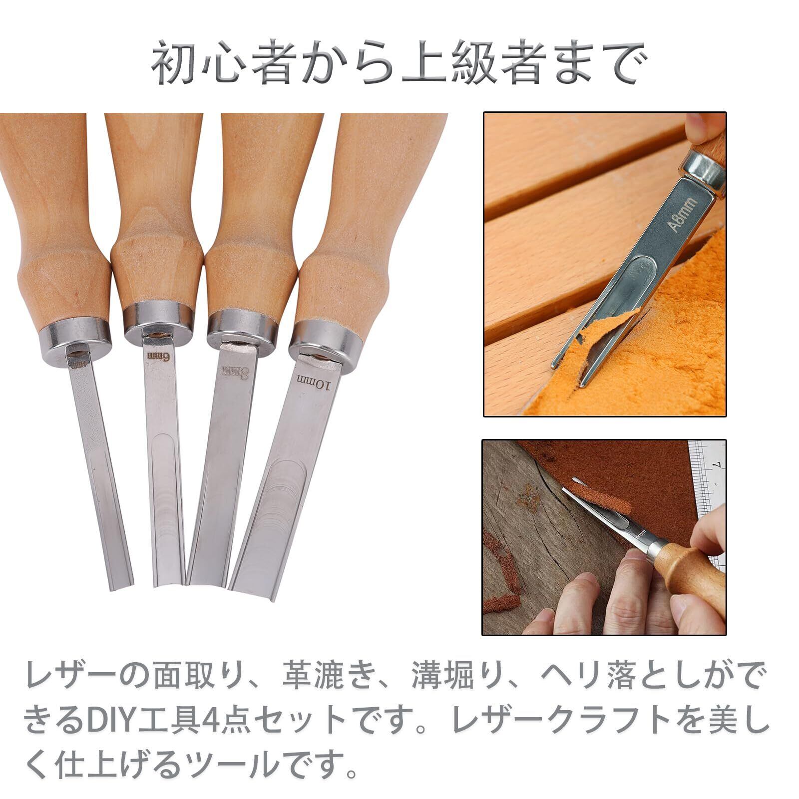 【初心者から上級者まで】レザーの面取り、革漉き、溝堀り、ヘリ落としができるDIY工具4点セットです。レザークラフトを美しく仕上げるツールです。