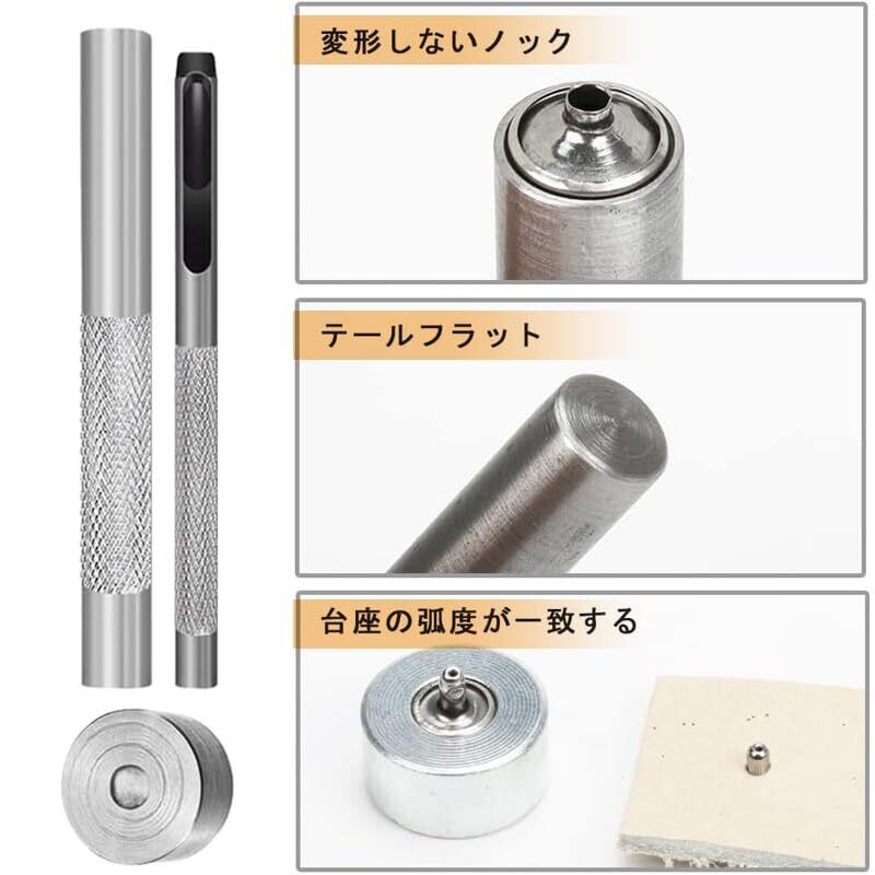 【高品質】カシメセットはスタッズ、穴あけパンチ、打ち棒は丈夫で耐久性が強い銅材料で作られています、光沢があります、 耐久性も強いです。