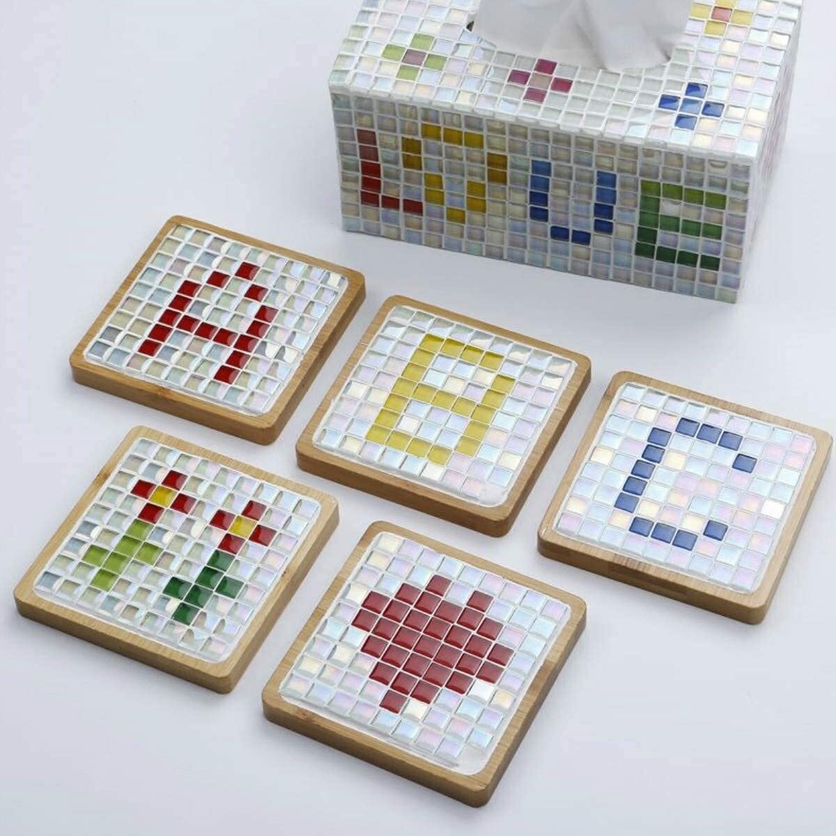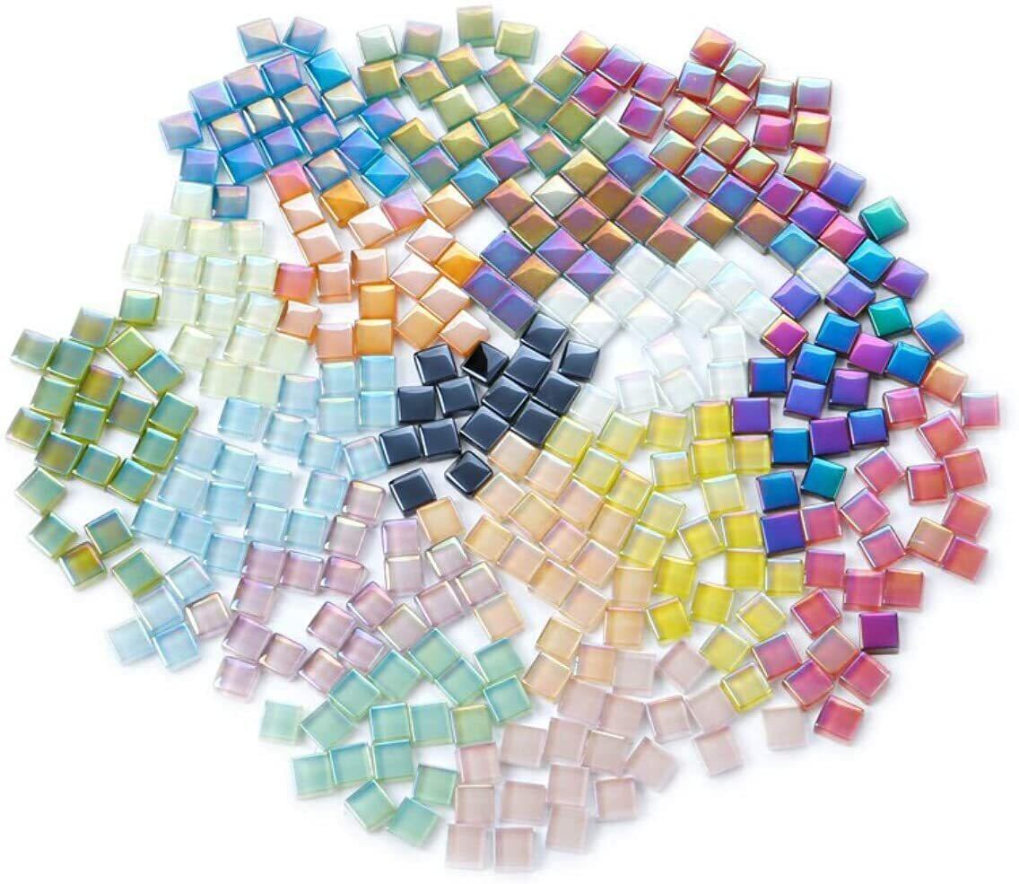 CarAngels 各色ランダム200個入り ラスター彩 ガラス モザイクタイル 1cm正方形 玉虫色 DIY 内装 デコレーション ハンドメイド クラフト (ミックスカラー)