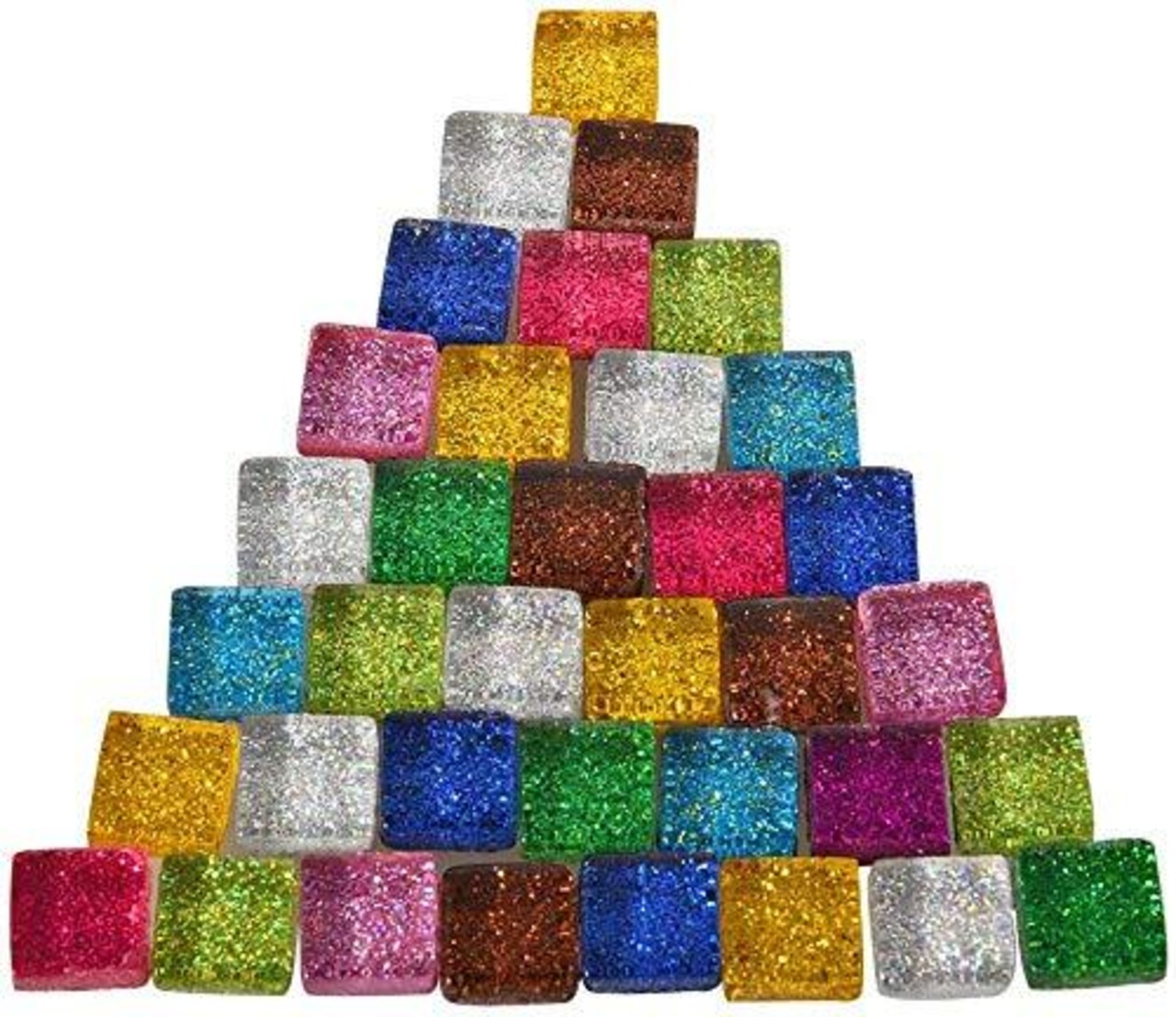 CarAngels ガラスモザイクタイル 全8色ミックス 可愛いラメデザインタイル 1cm正方形 DIY 内装 デコレーション ハンドメイド クラフト (300g)