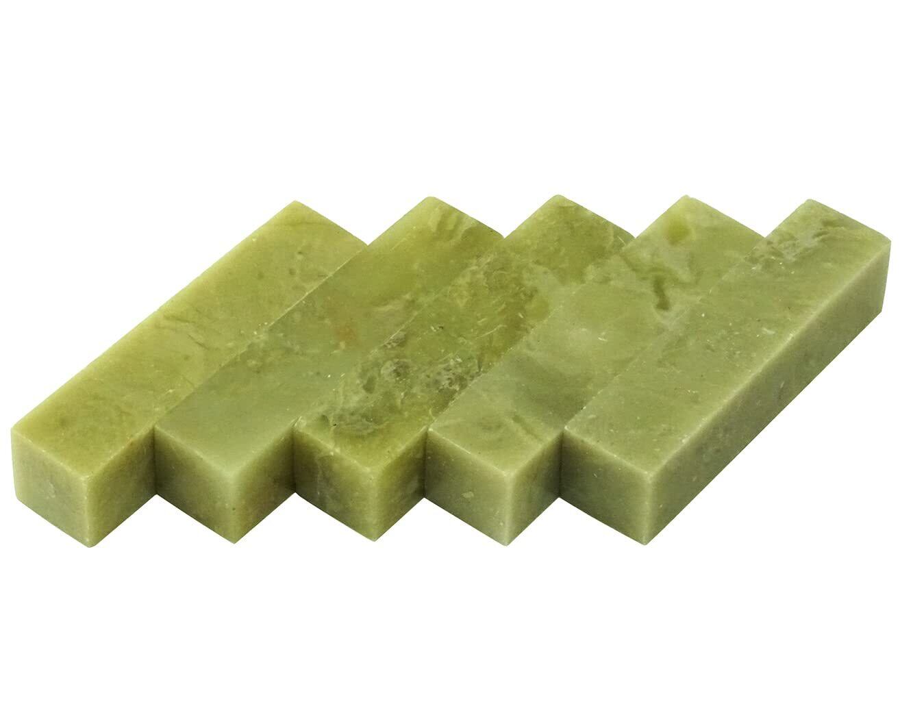 【印材サイズ 約12×12×50mm 5個セット】書道や水墨画、絵手紙作品の雅号印制作に最適な篆刻初心者でも彫りやすい印材です。彫る前に印面を耐水ペーパーで滑らかにしてお使いください。薄緑色の印材で、印材としての歴史も古く、現在も広く使われています。青田石は、「ひび割れ」が発生しております。また、天然の石印材ですので、石質には個体差があります。印刀が入りにくい硬い粒状のものが混入している場合もあります。予めご了承をお願い致します。また、キズ、欠け、歪み等がある場合があります。その際は紙やすり(耐水ペーパー)を利用して修正のうえお使いください。