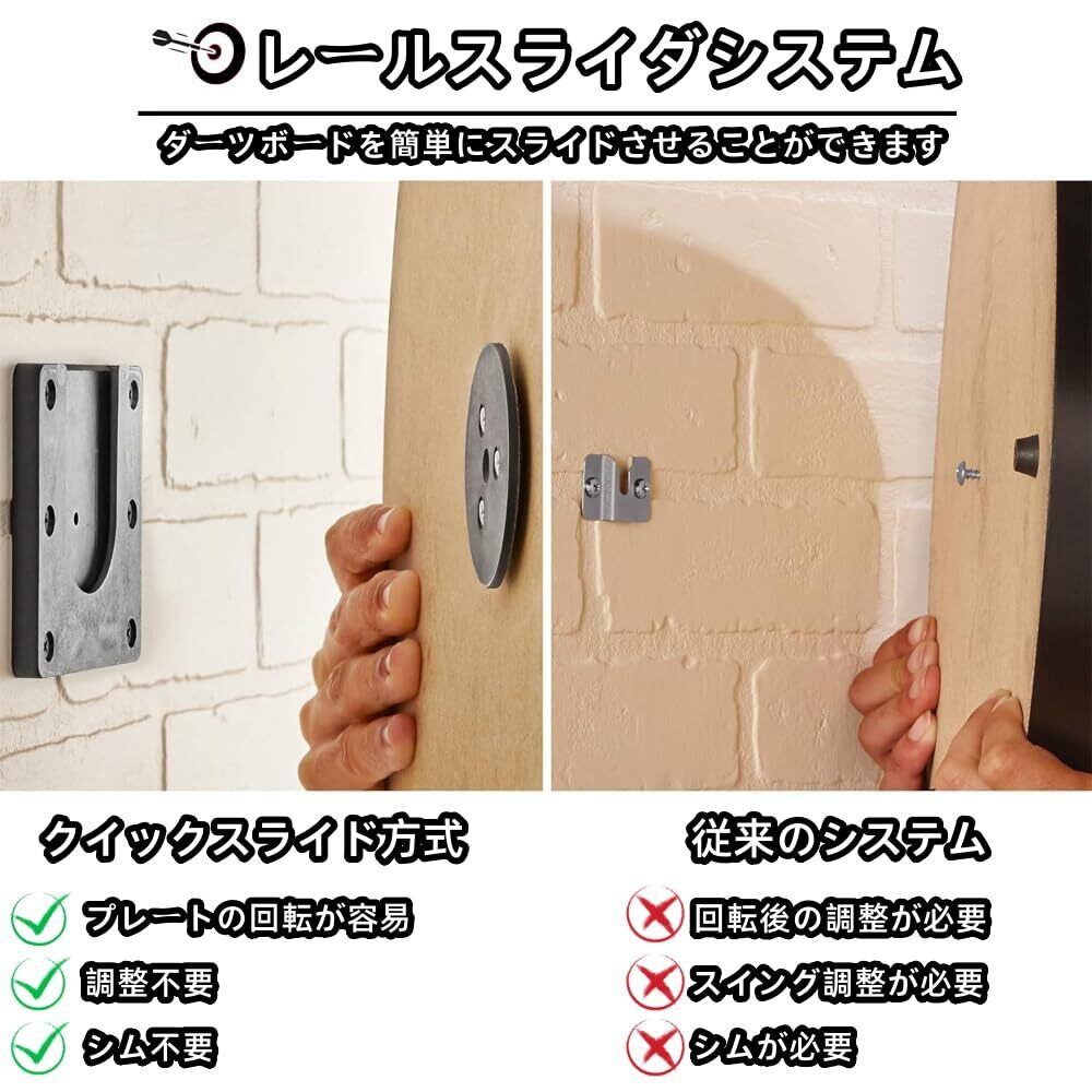 【簡単取り付け】このダーツボード取り付けブラケットは取り付けが簡単で、壁にダーツブラケットを固定し、スライダーをダーツボードに固定するだけで完璧にフィットします。取り付け、取り外し、およびダーツボードの回転が簡単です。