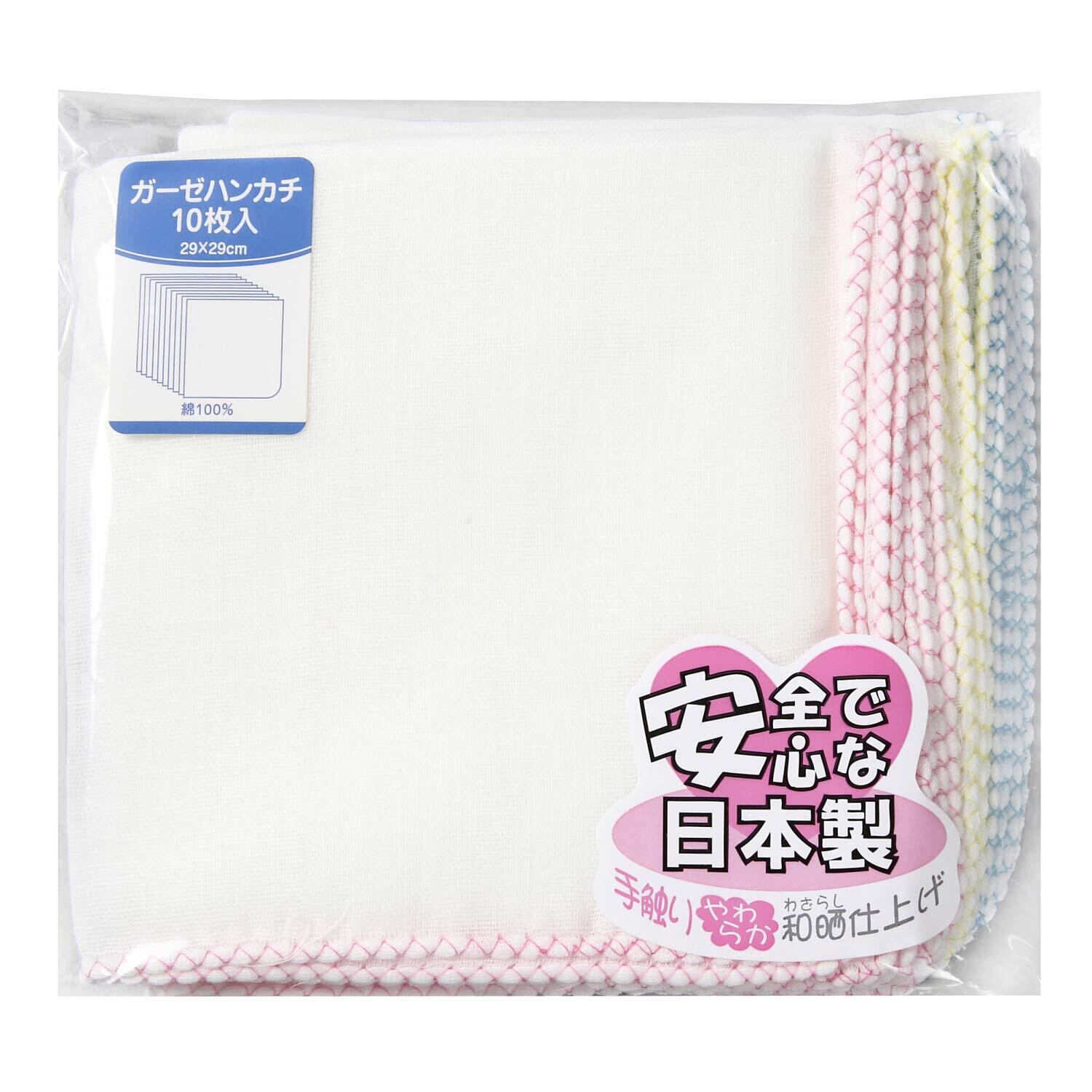 イサム商会 綿100% 日本製 ガーゼハンカチ 無地 29cm×29cm(10枚)