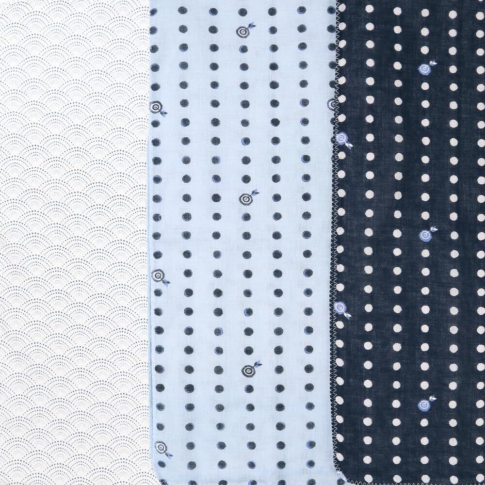 クラスタ 日本製手ぬぐい 二重袷 和晒ガーゼ ほつれ防止加工 豆しぼり・青海波柄/3枚セット