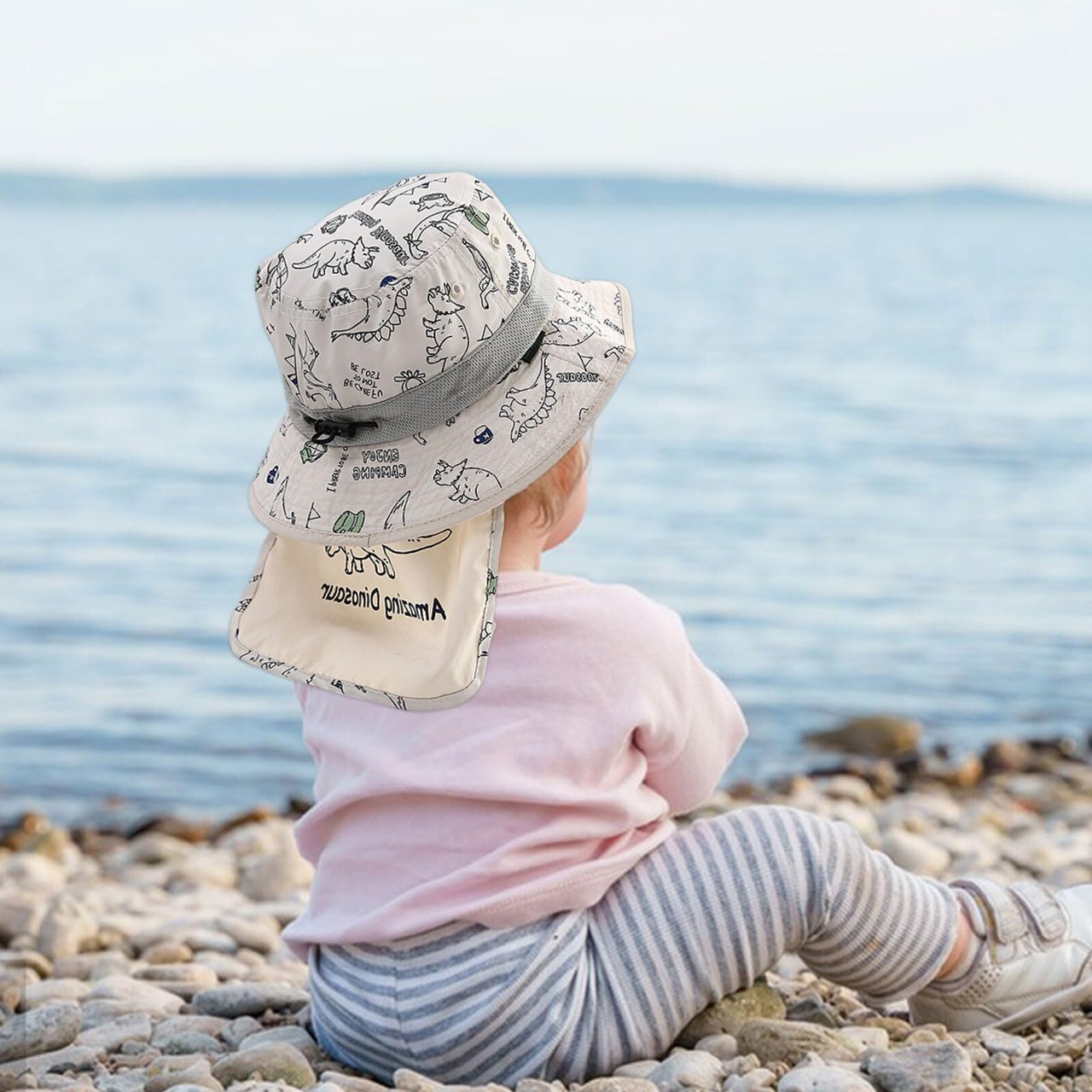 Kingsiely ベビー 帽子 赤ちゃん バケットハット 可愛い 恐竜 サファリハット つば広 日除け帽子 日焼け防止 紫外線対策 UVカット キッズ 女の子 男の子 アウトドア お出かけ 散歩 旅行 通学 自転車 海遊び 春 夏