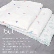 【やさしい風合いのイブルガーゼ】韓国発祥の寝具「イブル」をモチーフにデザインしたガーゼシーリーズ“ibul(イブル)”。イブルの優しい風合いを生かした、やわらかくふんわりとしたガーゼケットです。2重になっている生地は空気を多く含むため保温性に優れ、水分を素早く吸収。さらに速乾性もあり、汗をかきやすい赤ちゃんも快適に使用することができます。