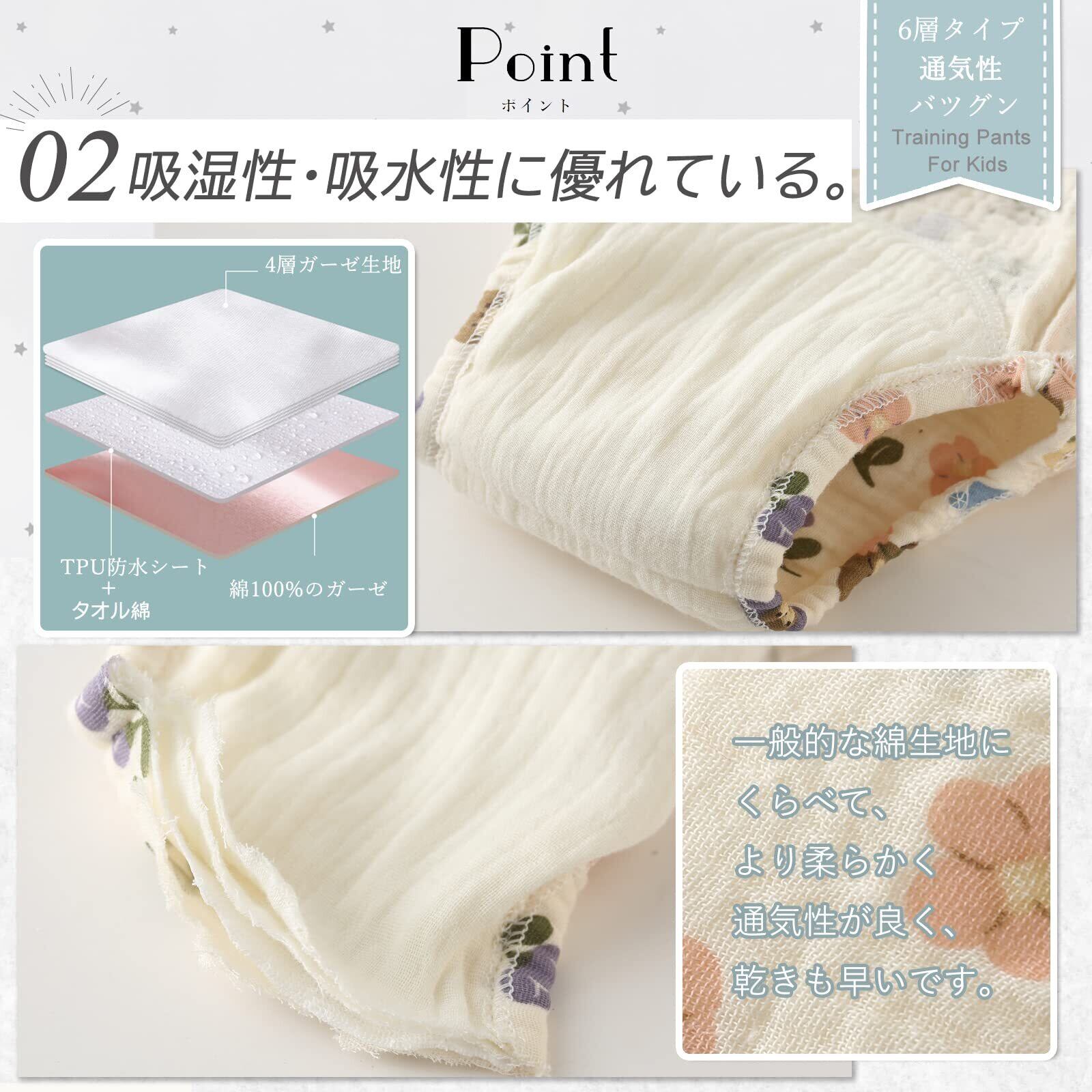 GoUseGo トレーニングパンツ ベビー 男の子 女の子 6層 6枚組 赤ちゃん トイトレパンツ 80 90 100 110cm ガーゼ地 綿 コットン 吸水性 通気性 トレパン おねしょ パンツ