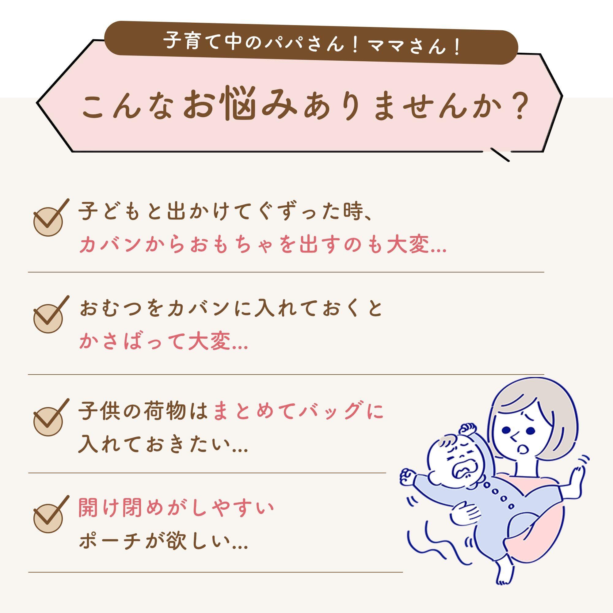 【リング付きのチャック】チャック部分がリングになっているので、スムーズに開け閉めがしやすく、急いでいるときにも助かります。