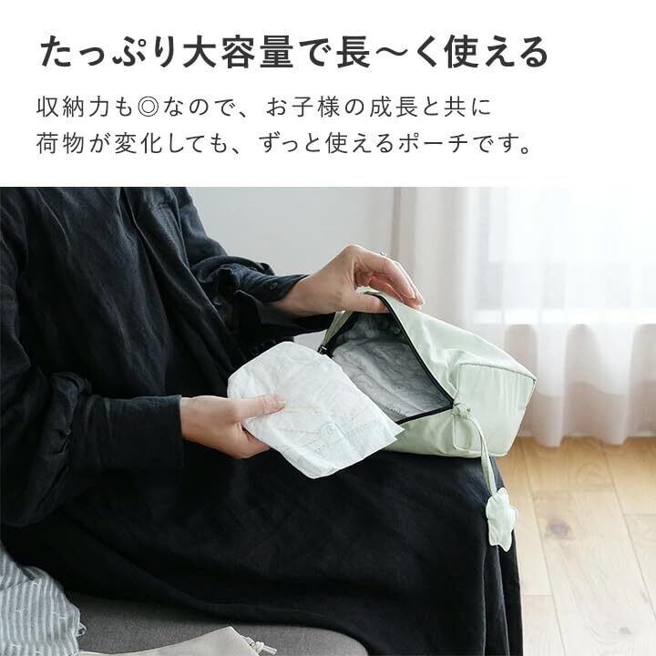 【たっぷり大容量で長~く使える】 収納力も◎なので、頻繁におむつ替えをするベビーとのお出かけは、たくさんのおむつとおしりふきシートを一緒に入れることも。 おむつ変えの頻度が下がる幼児とのお出かけは、数枚のおむつと着替えをまとめて入れることもできます。 お子様の成長と共に荷物が変化しても、ずっと使えるポーチです。