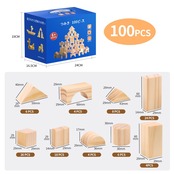 【100ピース入り】9種の形状の天然木の積み木100ピースセット、盛りたくさんのつみきで、好きなだけ色んな形に作れる。