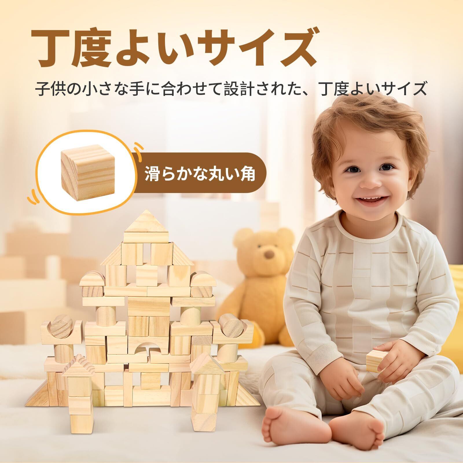 つみ木 100ピース入り 木材 積み木 9種の形状 収納袋付き 12か月以上 シンプル 赤ちゃん 知育玩具 おもちゃ 無着色 天然素材