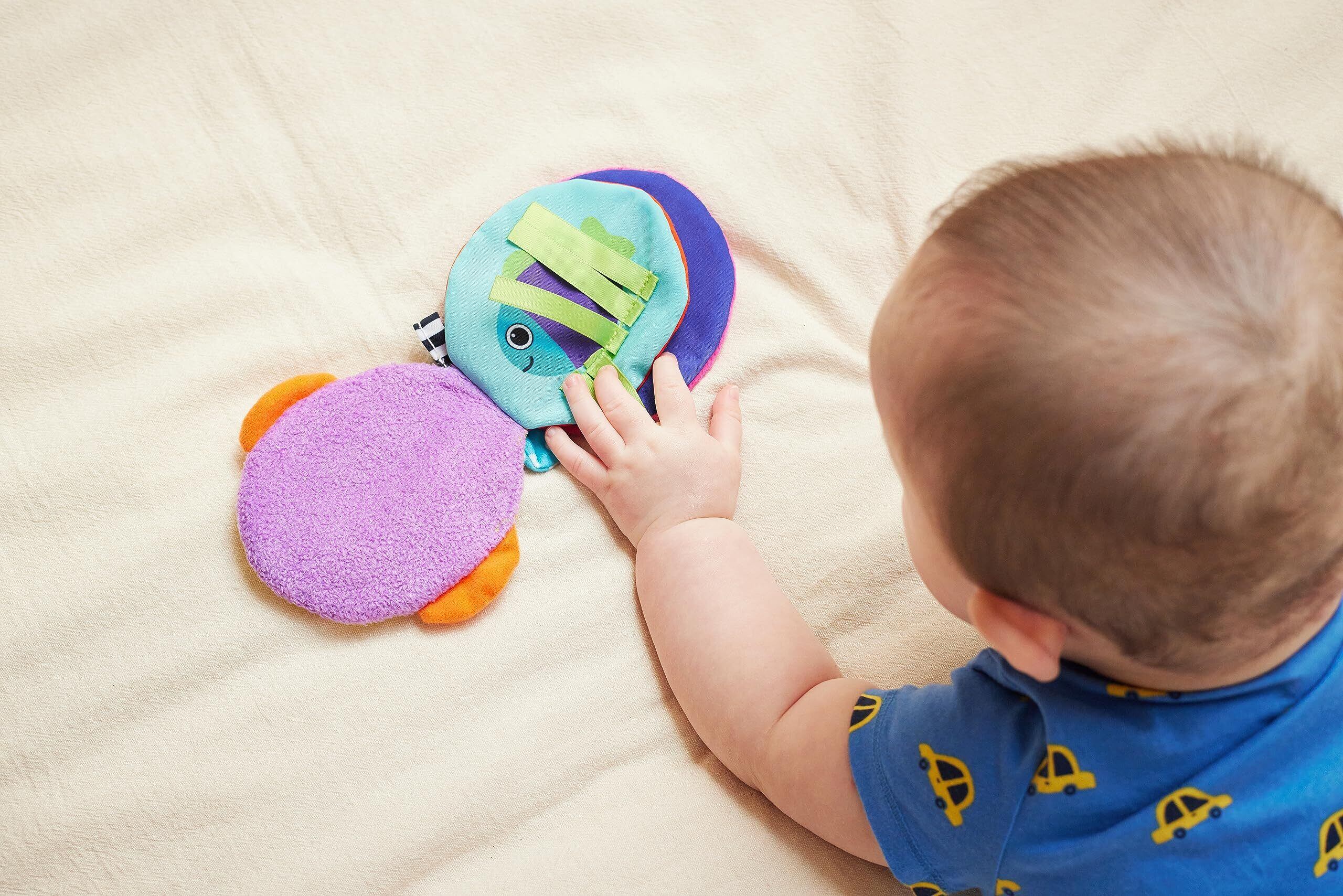さわってみよう:赤ちゃんは握ったり触ったりすることが大好き。指先の感覚は体全体や脳の発達につながります。