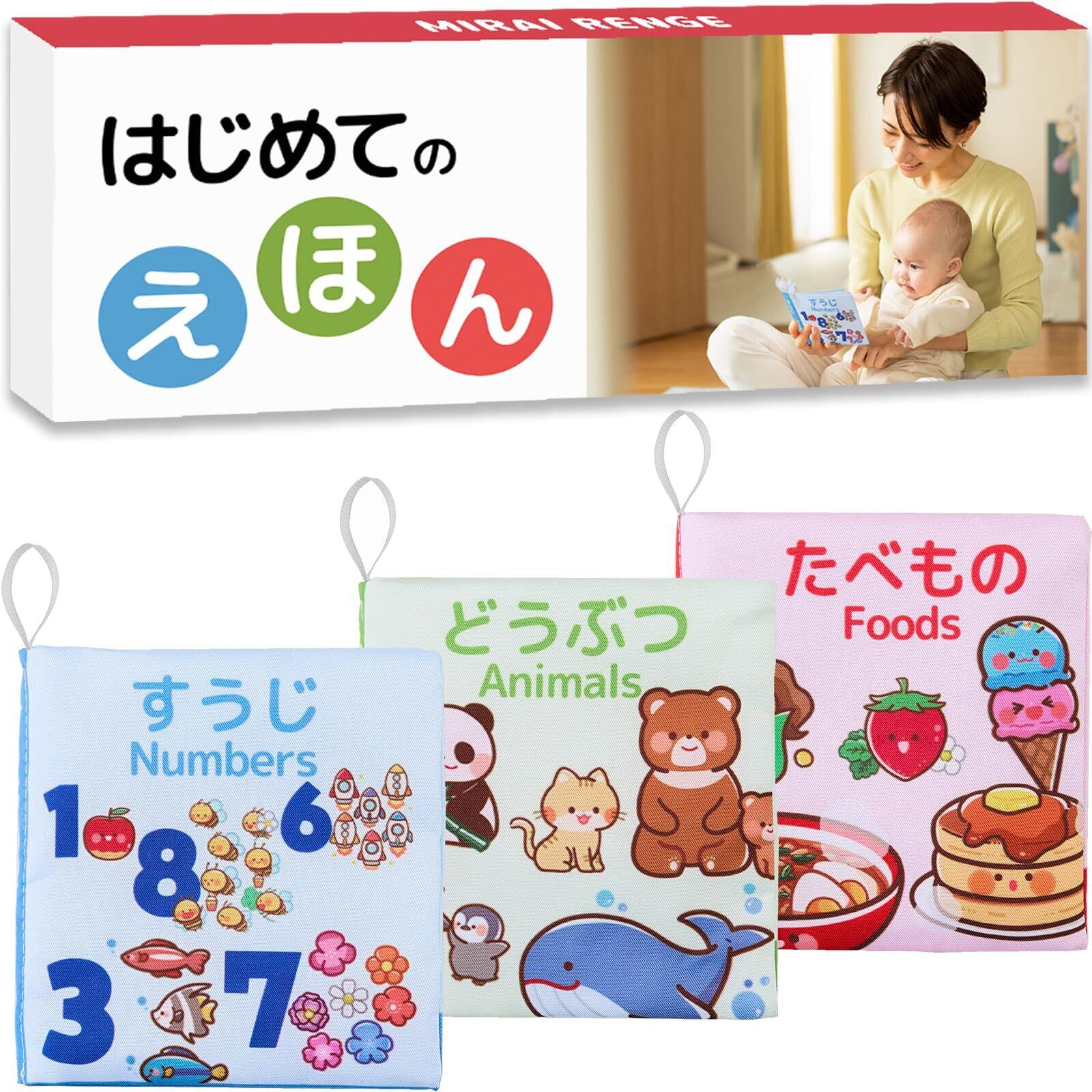 Mirai Range 布絵本 英語 赤ちゃん おもちゃ 【玩具安全基準適合品】 知育玩具 ファーストトイ 出産祝い 丸洗い可能 3冊セット