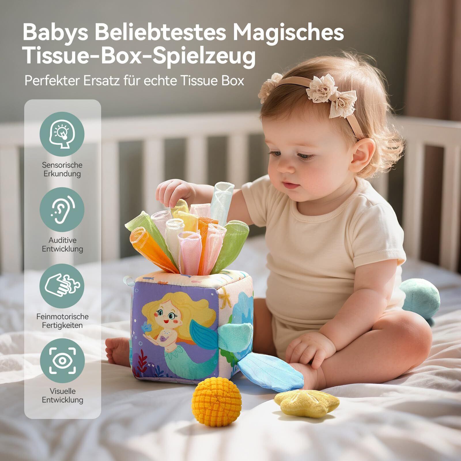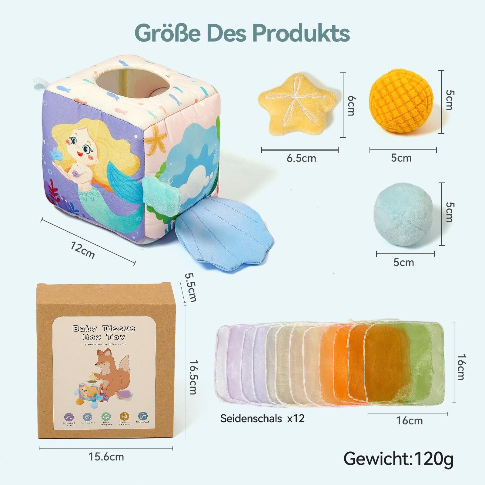 【色とりどりの布で遊び方無限大】赤ちゃんがティッシュを1枚ずつ簡単に引き出せるように、様々な方法で探索することができます。このアクティビティは、細かい運動能力の発達を促し、好奇心を満たし、探索と発見を促します。さらに、シルクスカーフは結ぶことができ、お子様にサプライズをプレゼントします。